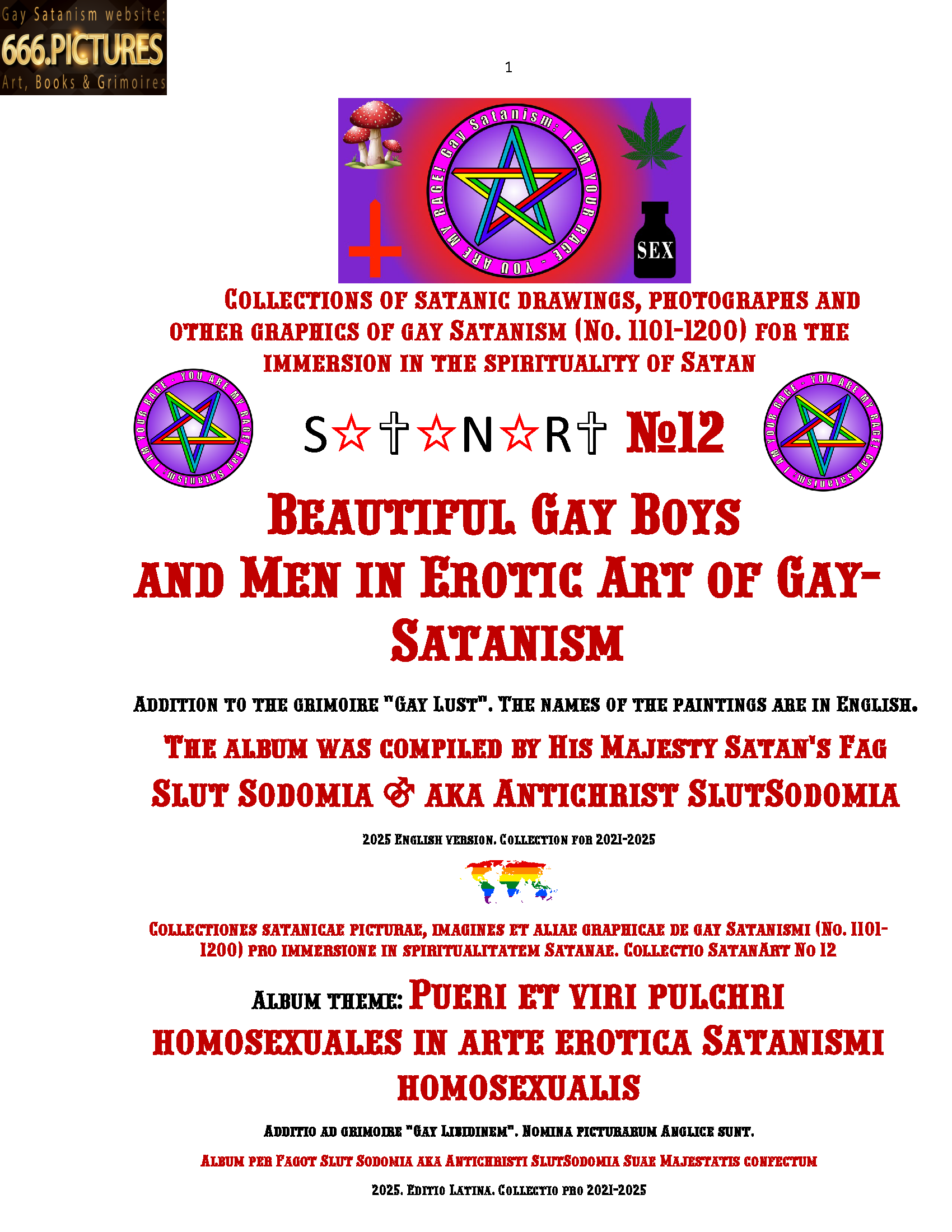 In this collection of gay Satanism there is no explicit image of Satan. The collection SatanArt №12 contains pictures of boys, men, sluts and femboys. Satanic images are located in other releases of SatanArt albums. Although, but the spirit of Satan and Satanic lust permeates all releases, including this selection of images of gay erotica and pornography.
