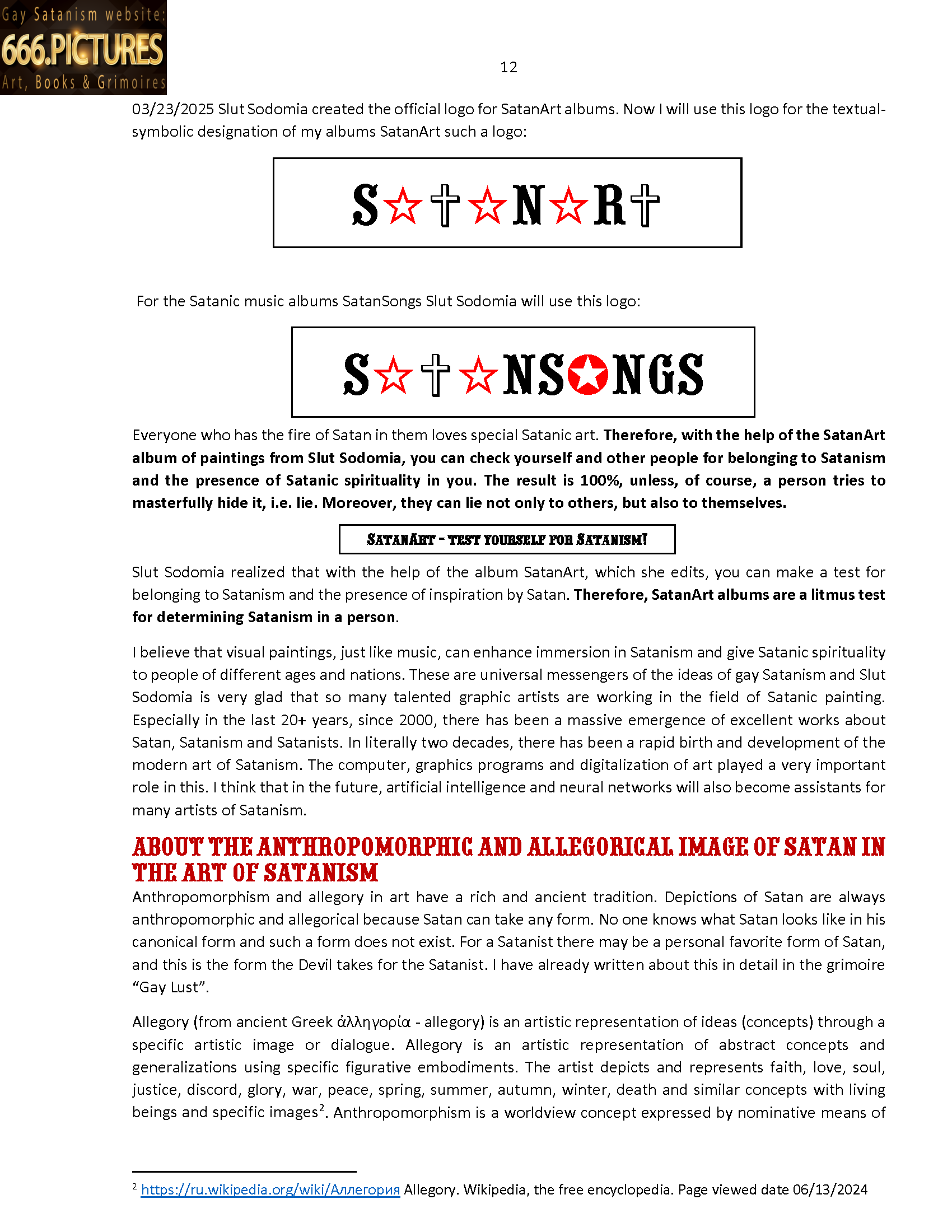 Almanac of the Gay Satanism’s art SatanArt Nr. 12: TABLE OF CONTENTS