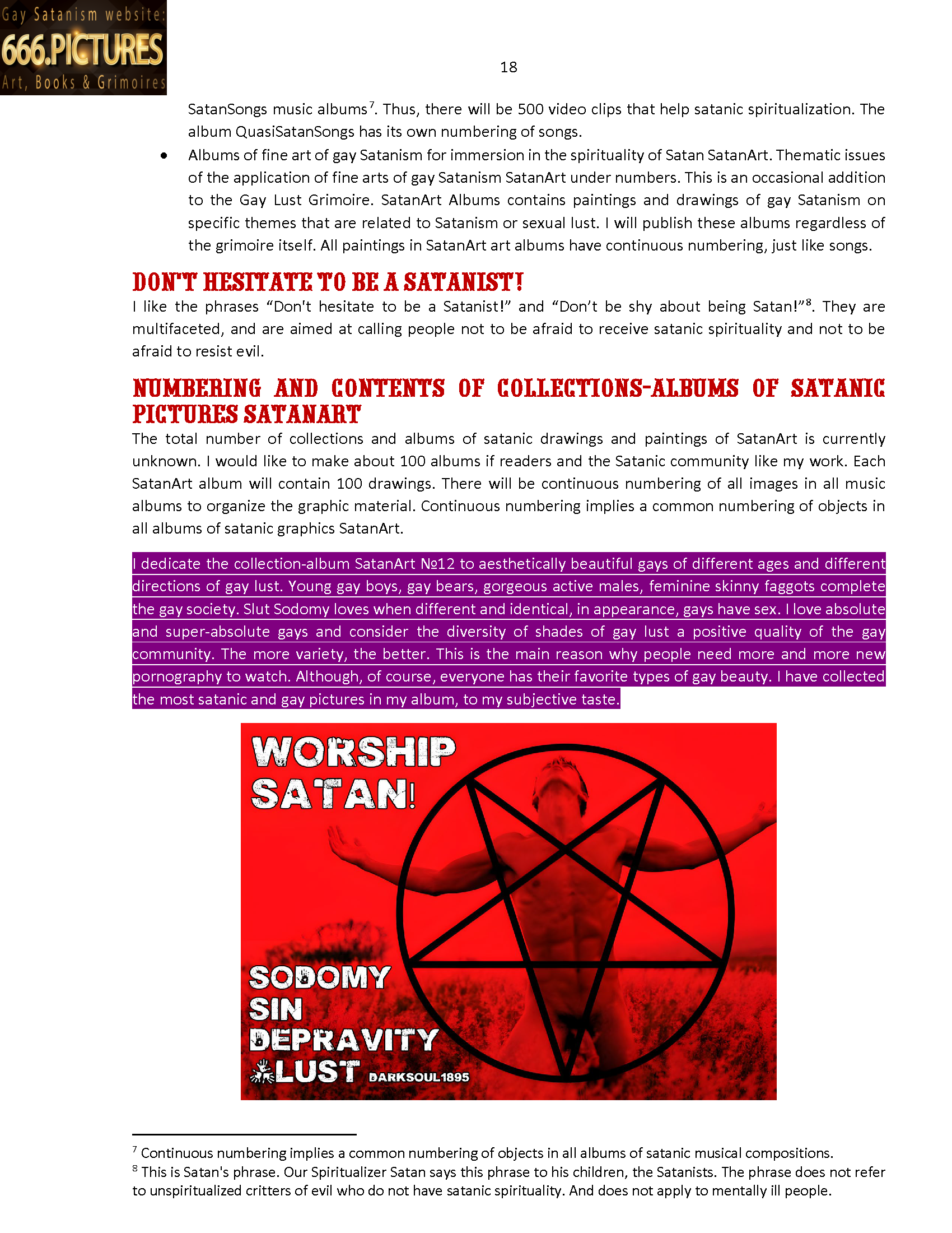 ABOUT ADDITIONS TO THE GRIMOIRE “GAY LUST” FOR DEPTH SPIRITUALITY BY SATAN 17
