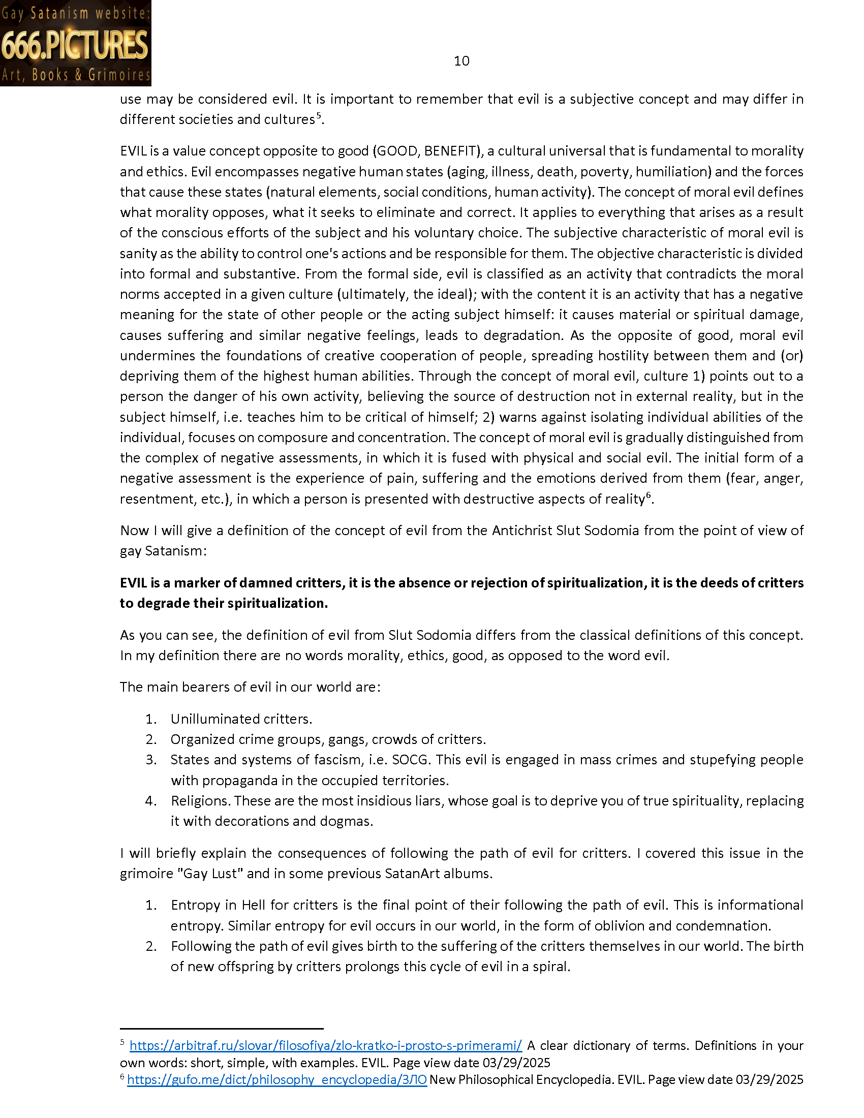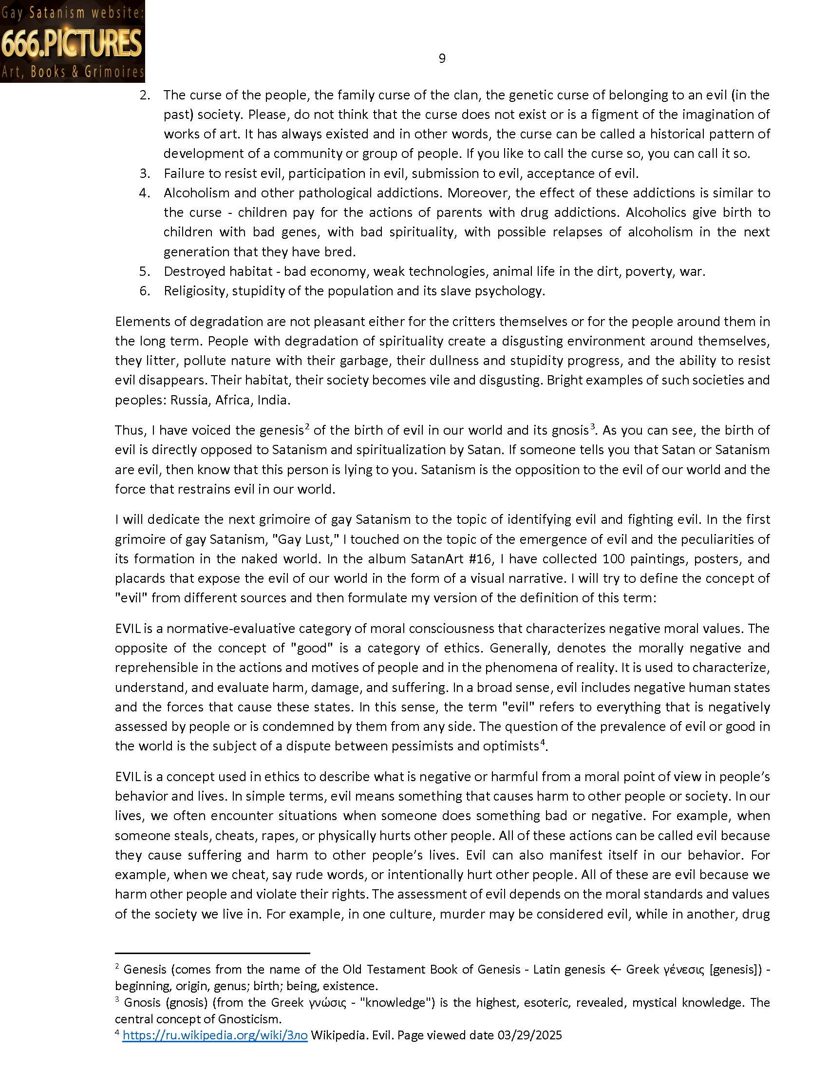 I will dedicate the next grimoire of gay Satanism to the topic of identifying evil and fighting evil. In the first grimoire of gay Satanism, “Gay Lust,” I touched on the topic of the emergence of evil and the peculiarities of its formation in the naked world. In the album SatanArt #16, I have collected 100 paintings, posters, and placards that expose the evil of our world in the form of a visual narrative. I will try to define the concept of “evil” from different sources and then formulate my version of the definition of this term: