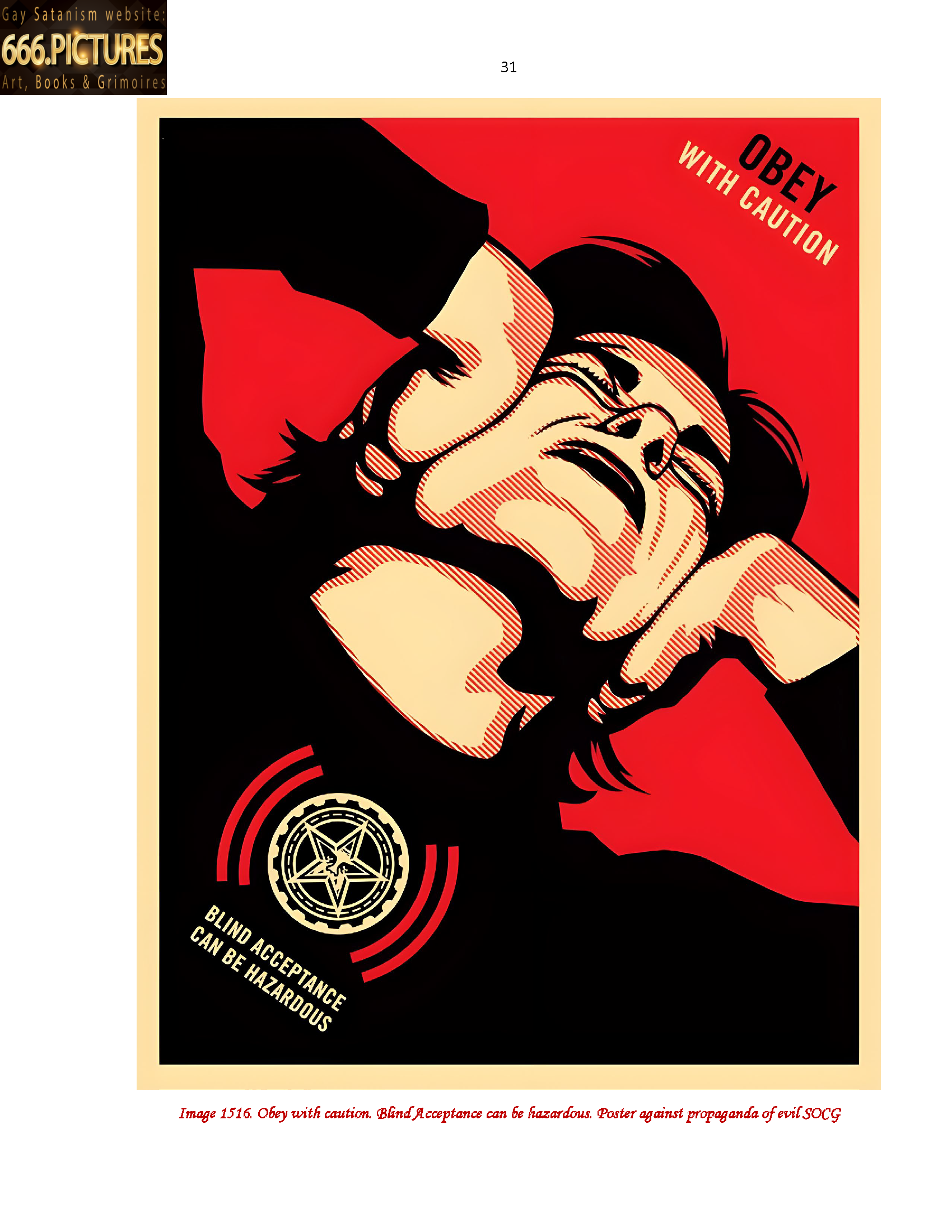 Image 1516. Obey with caution. Blind Acceptance can be hazardous. Poster against propaganda of evil SOCG 31
