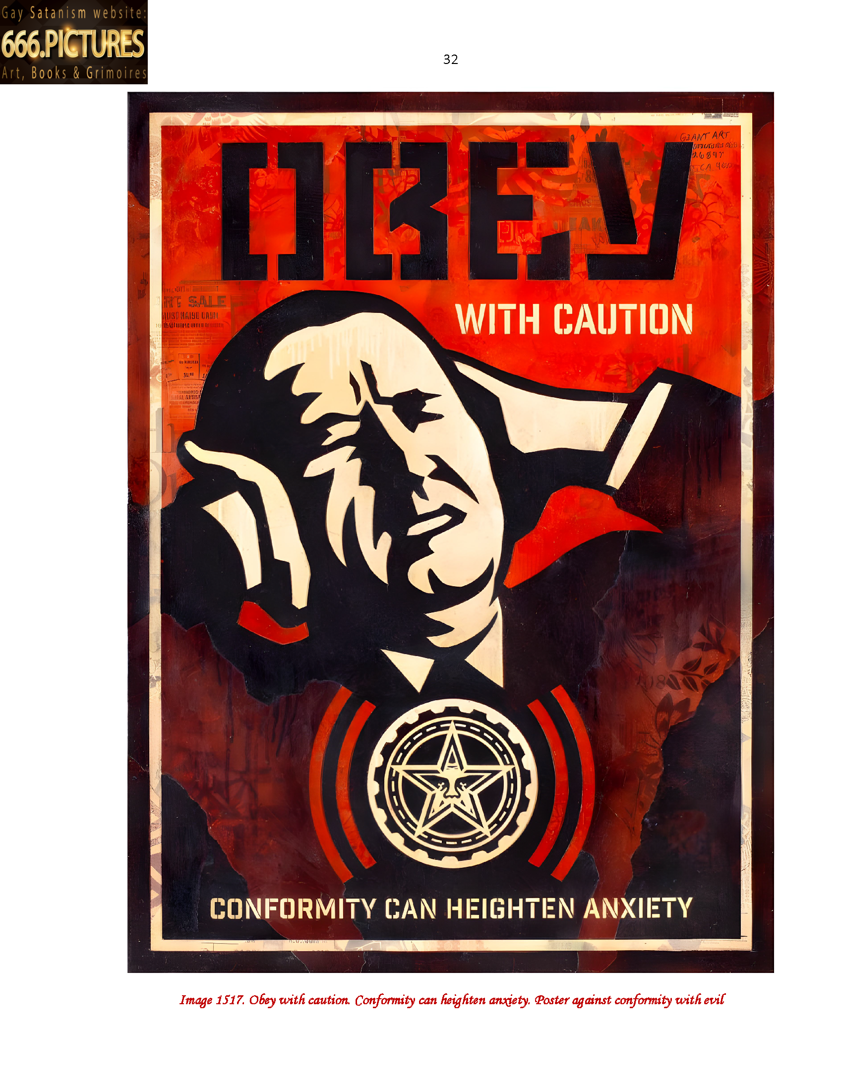 Image 1517. Obey with caution. Conformity can heighten anxiety. Poster against conformity with evil 32