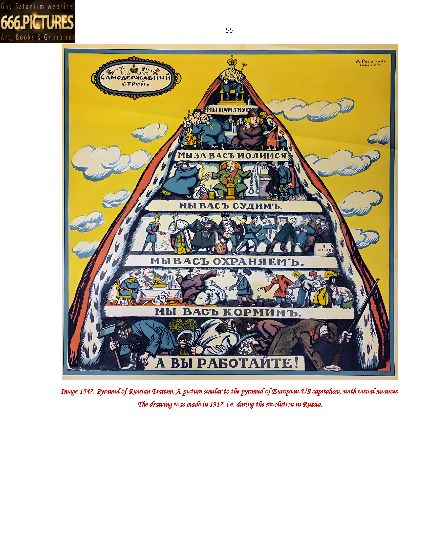 Image 1547. Pyramid of Russian Tsarism. A picture similar to the pyramid of European-US capitalism, with visual nuances. The drawing was made in 1917, i.e. during the revolution in Russia. 55