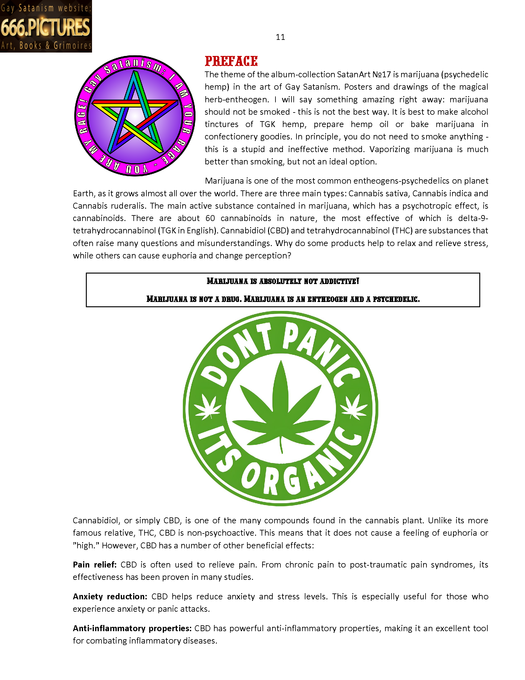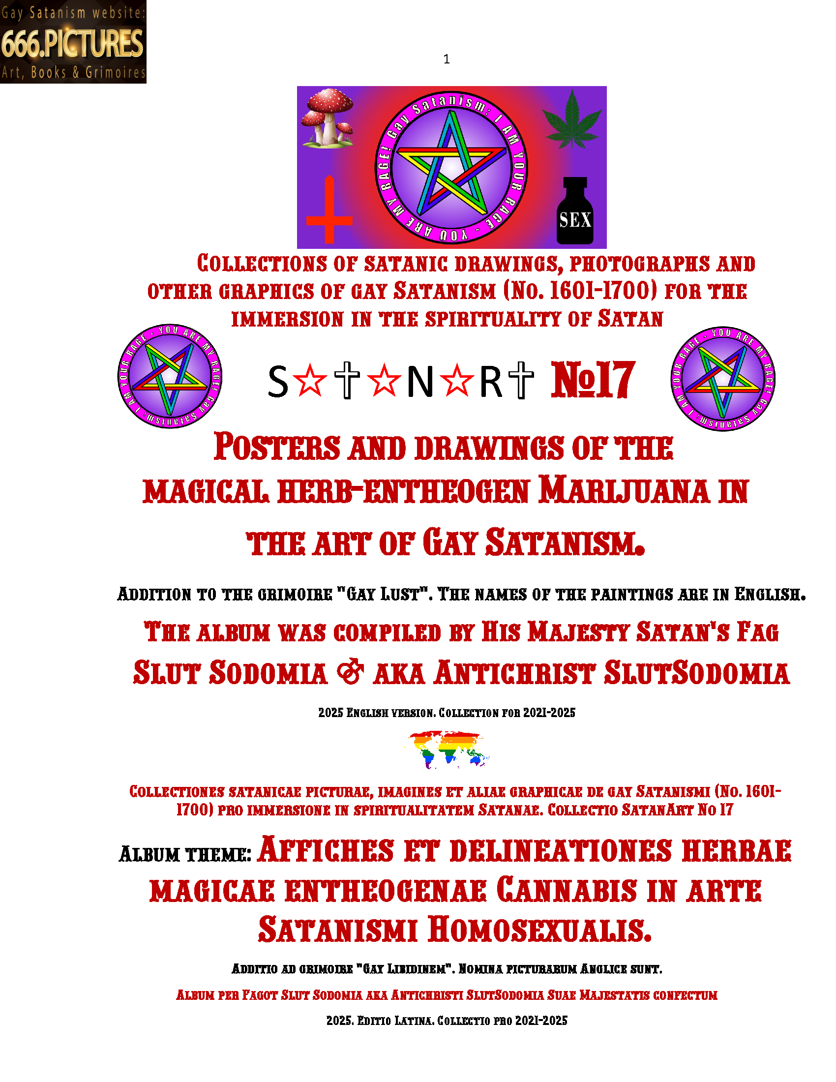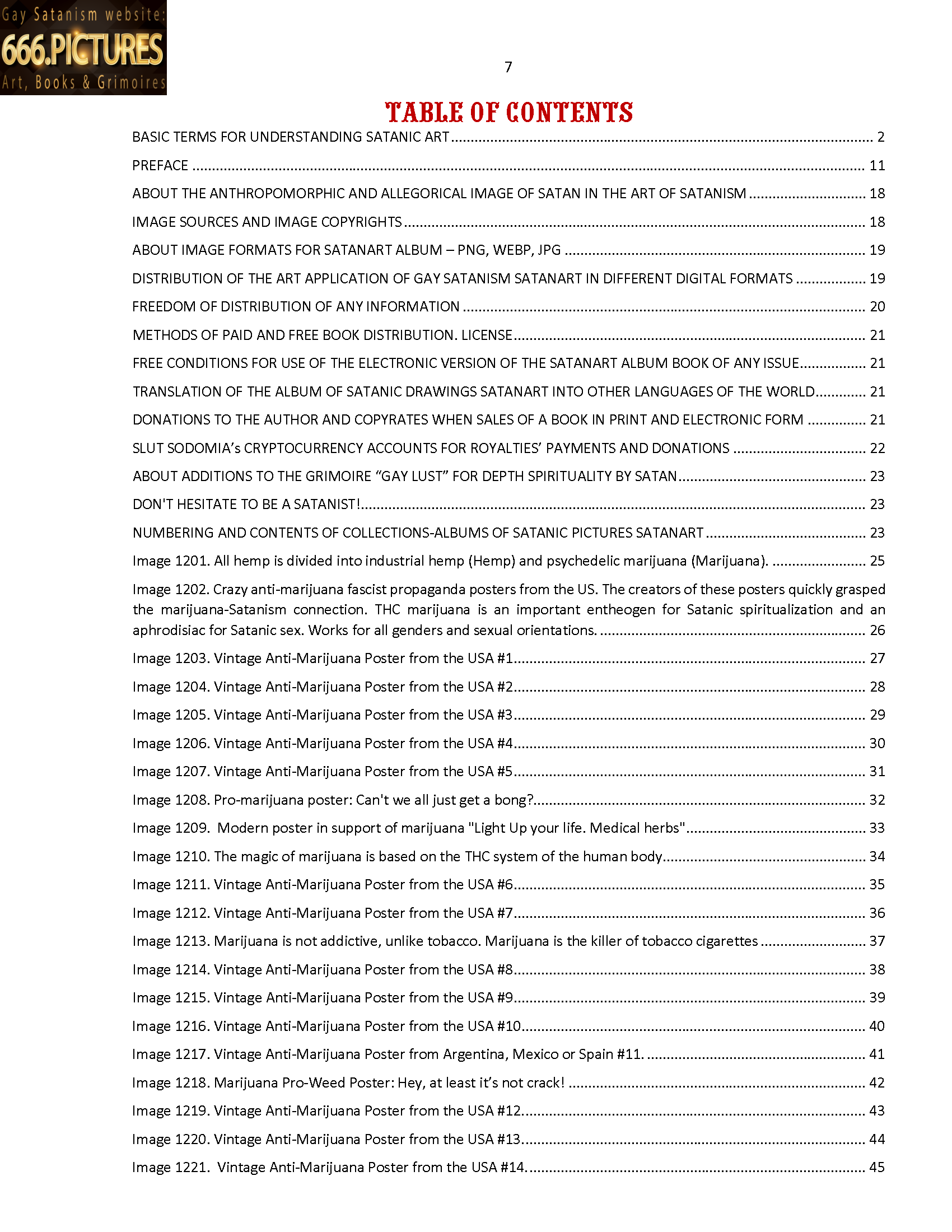 Almanac of the Gay Satanism’s art SatanArt Nr. 17: Posters and drawings of the magical herb-entheogen Marijuana TABLE OF CONTENTS