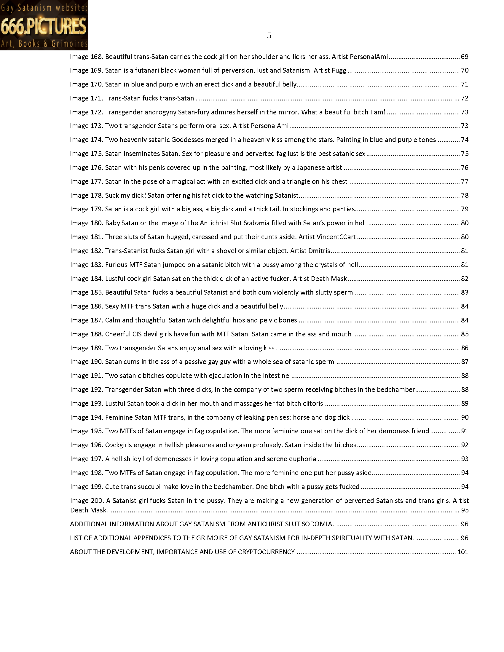 Image 200. A Satanist girl fucks Satan in the pussy. They are making a new generation of perverted Satanists and trans girls. Artist Death Mask 95