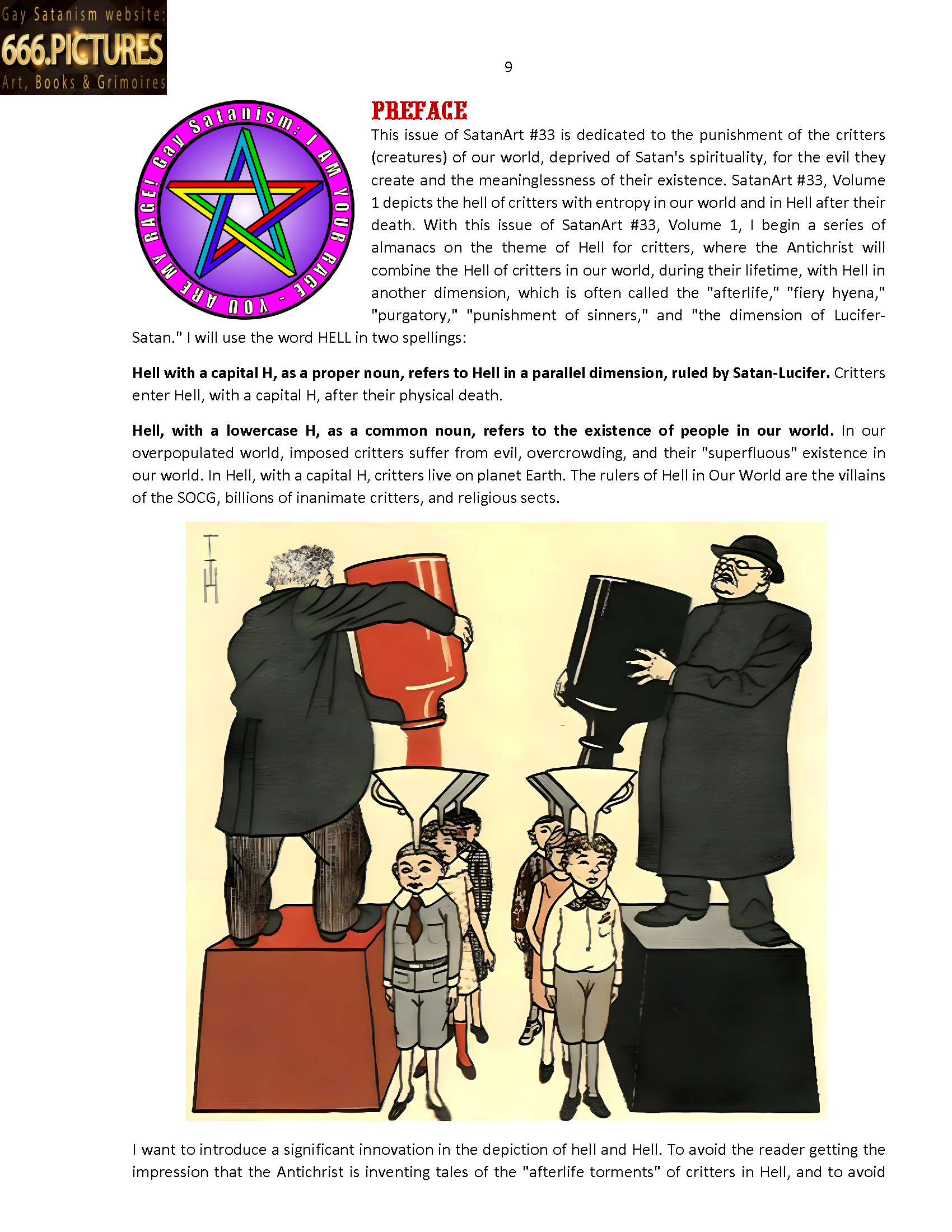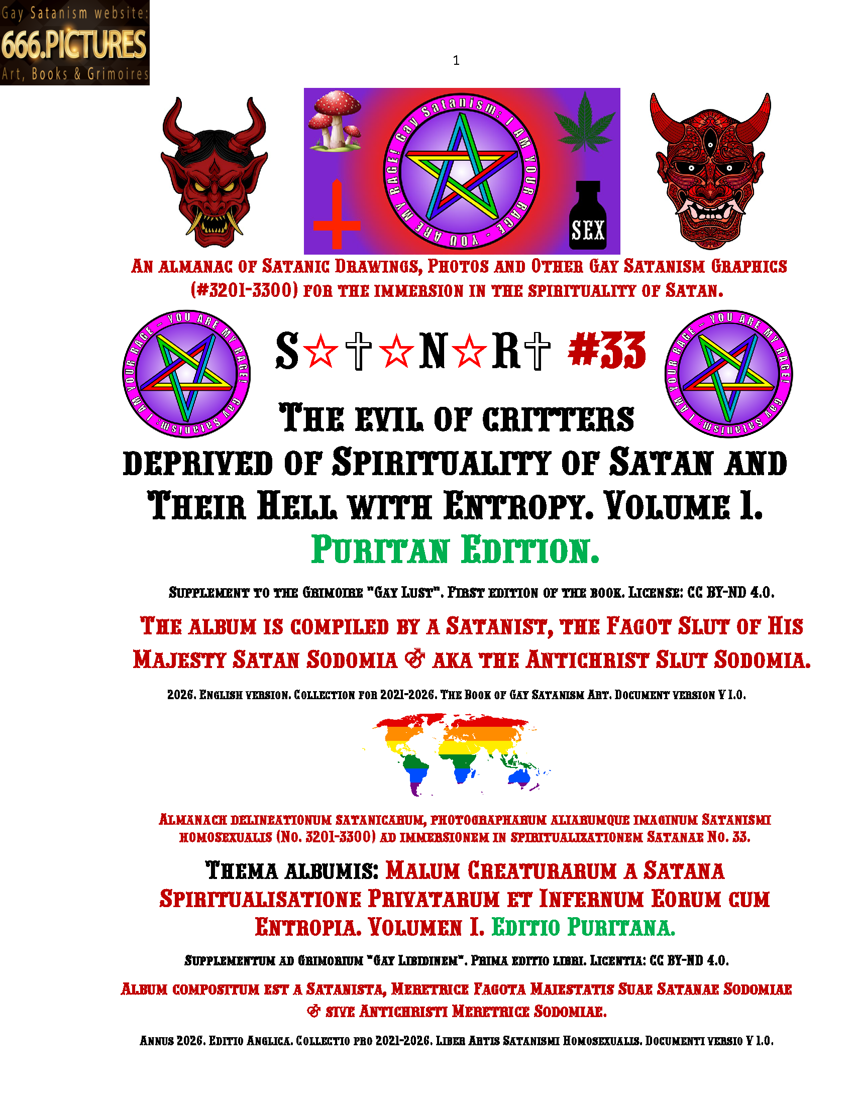 Fine art satanic almanac SatanArt. Nr. 33: The evil of critters deprived of Spirituality of Satan and Their Hell with Entropy. Volume 1. Puritan Edition. High quality PDF e-Book
