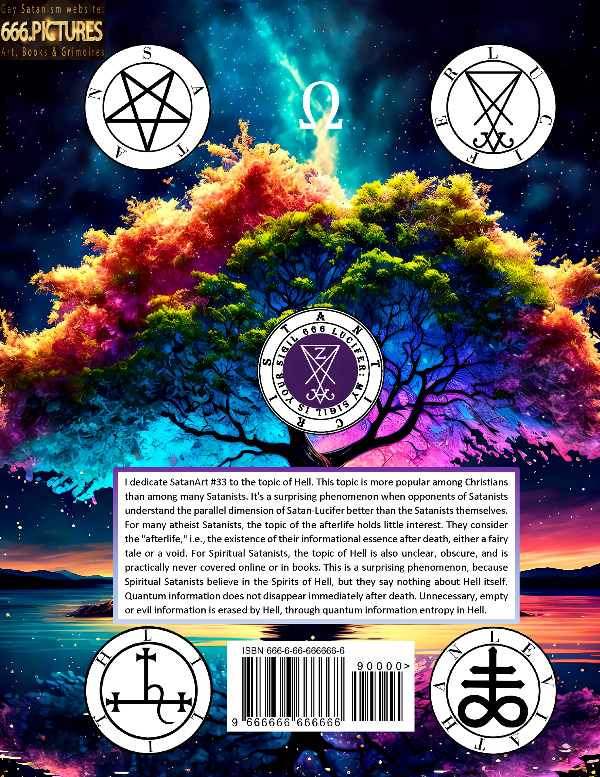 This issue of SatanArt #33 is dedicated to the punishment of the critters (creatures) of our world, deprived of Satan’s spirituality, for the evil they create and the meaninglessness of their existence. SatanArt #33, Volume 1 depicts the hell of critters with entropy in our world and in Hell after their death. With this issue of SatanArt #33, Volume 1, I begin a series of almanacs on the theme of Hell for critters, where the Antichrist will combine the Hell of critters in our world, during their lifetime, with Hell in another dimension, which is often called the “afterlife,” “fiery…