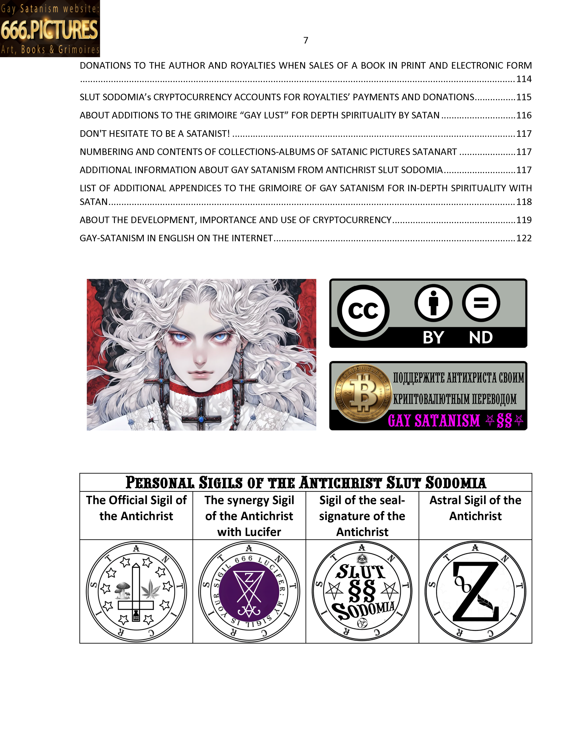 Fine art satanic almanac SatanArt. Nr. 33: The evil of critters deprived of Spirituality of Satan and Their Hell with Entropy. Volume 1. Puritan Edition. TABLE OF CONTENTS