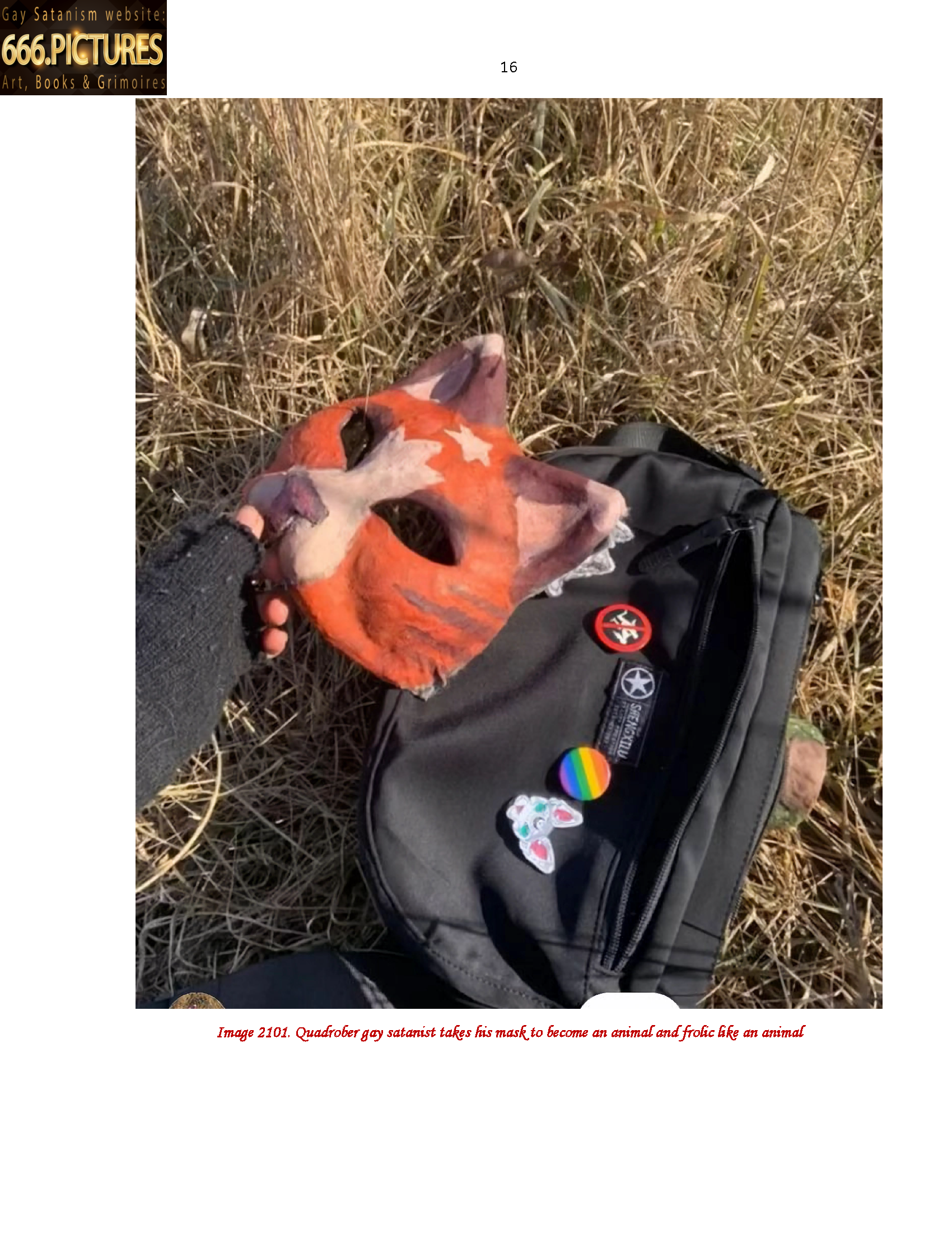 Image 2101. Quadrober gay satanist takes his mask to become an animal and frolic like an animal 16