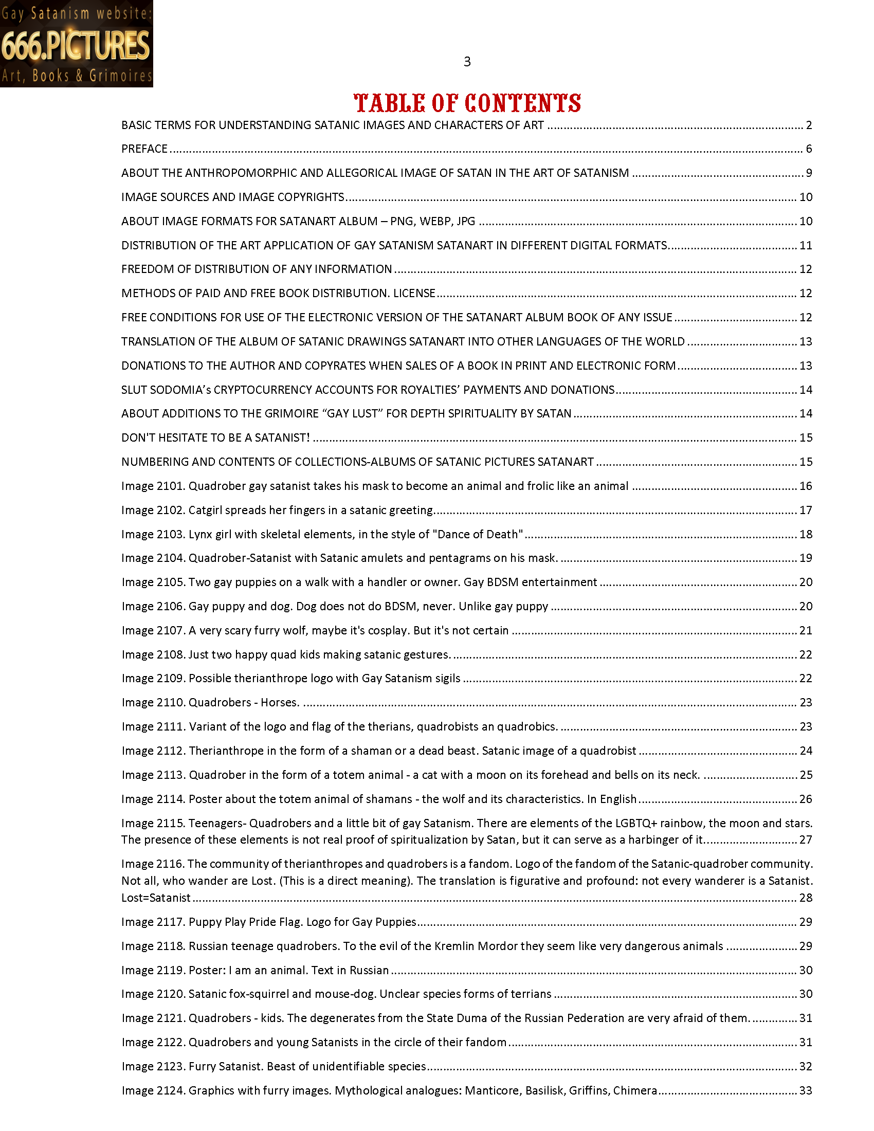 Gay Satanism’s fine art almanac SatanArt. Nr. 22: Zoo-Satanism: Quadrobists, Therianthropes, Furry, Gay Pups TABLE OF CONTENTS