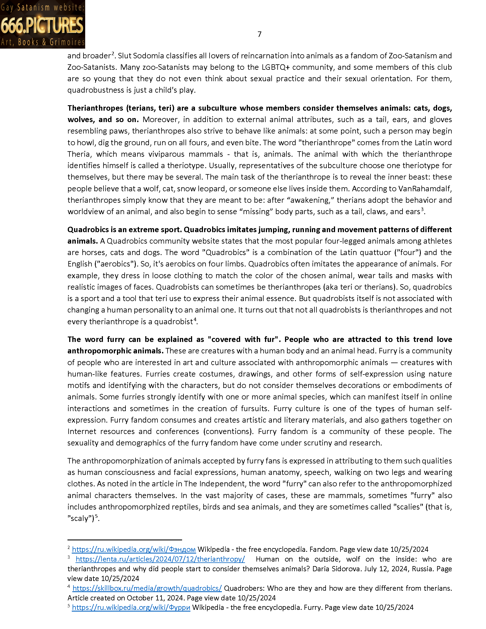 Get closer to nature and throw off the shackles of evil, through playing an animal or through a totemic connection with the spirit of an animal. These are traditional quasi-Satanic values, speaking the language of evil creatures, which have been used for thousands of years by shamans and tribes of ancient people around the world. Animal spiritualization protects you from evil and in this there is a great similarity with classical Satanism. However, for Satanists it is the spirit of Satan. It is possible that animal spiritualization will be the beginning of your spiritualization by Satan. To be spiritualized by Satan, you need to feel your sexuality, have a wealth of knowledge and a lot of life experience. When a teenager receives such attributes of his awareness, he will become a Satanist and accept spiritualization by Satan. Zoo-Satanism is a sandbox for real Satanism and is a quasi-Satanism that serves as a transitional stage of human spiritualization. I hope that the release of the album SatanArt #22 will become a mental defense for quadrobers, terries, furries and gay puppies, their little hobby-zoo-compass.
