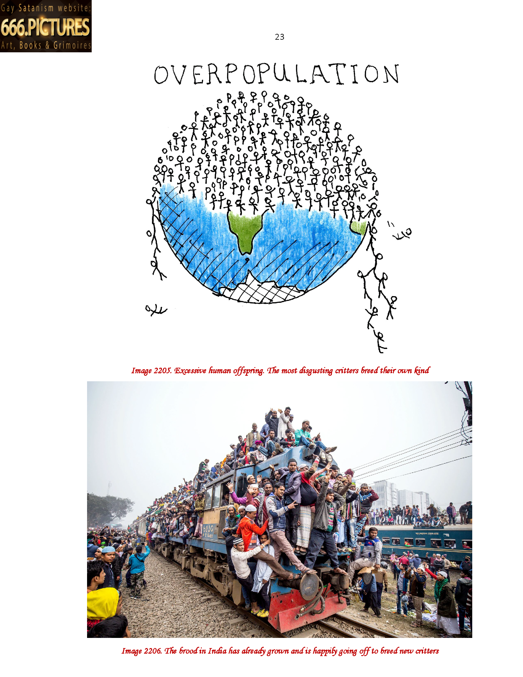 Image 2244. The overpopulation of the “developing countries” comes from the lack of awareness of the population of these territories and from low spirituality. Savage people use the achievements of white civilization and reproduce like animals. Satanism is awareness. Savagery is an animal life in the style of monkeys. Black people can also be conscious if they live among the spiritualized white civilization. 46