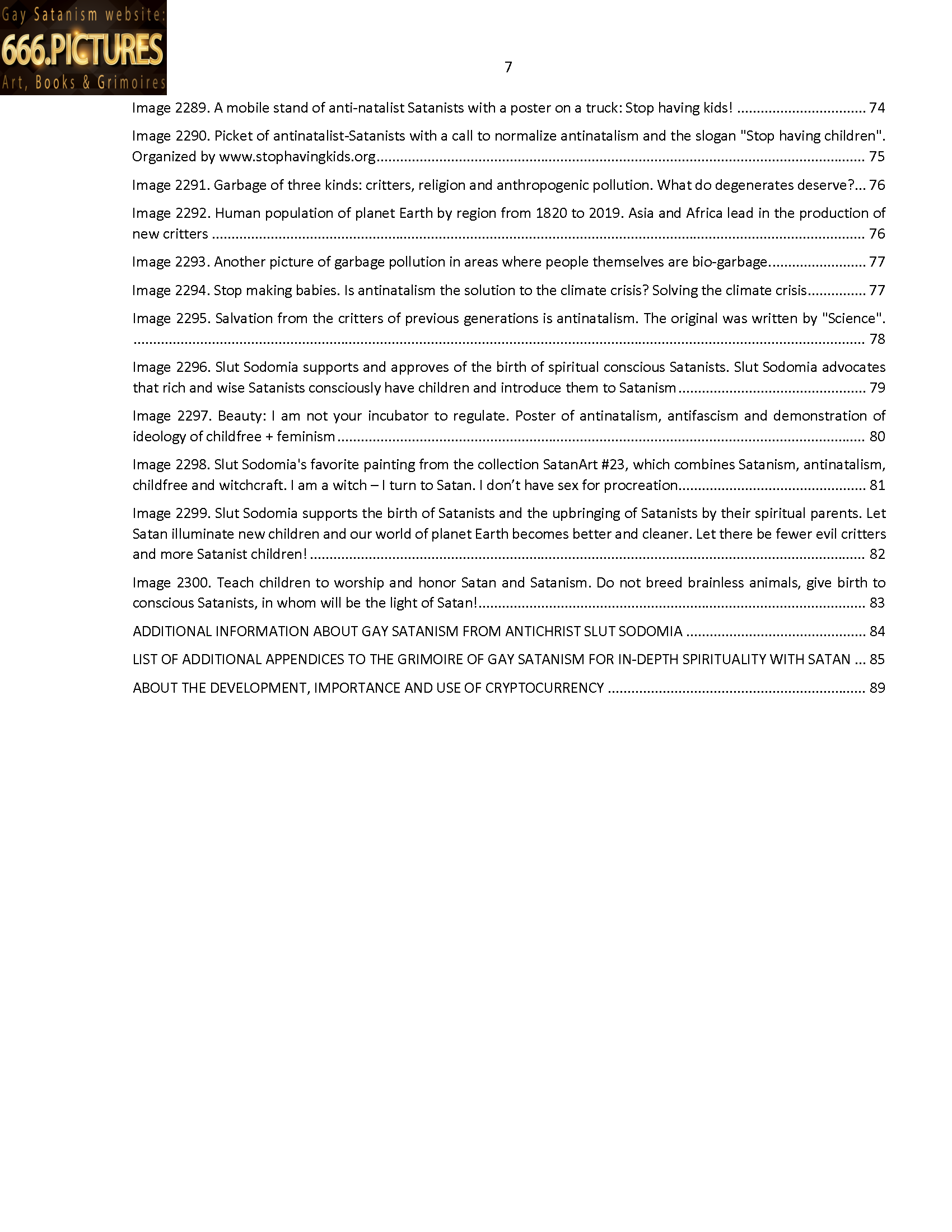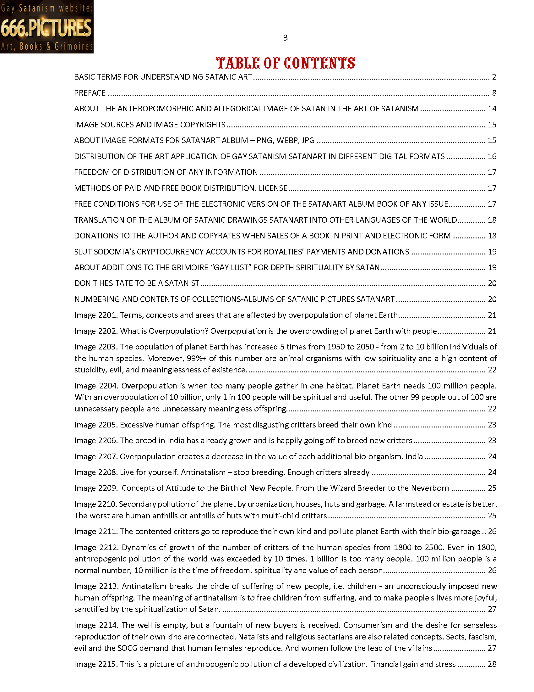 Gay Satanism’s fine art almanac SatanArt. Nr. 23: Overpopulation. Child-free. Antinatalism. Anthropogenic pollution of the Earth with excess human offspring TABLE OF CONTENTS