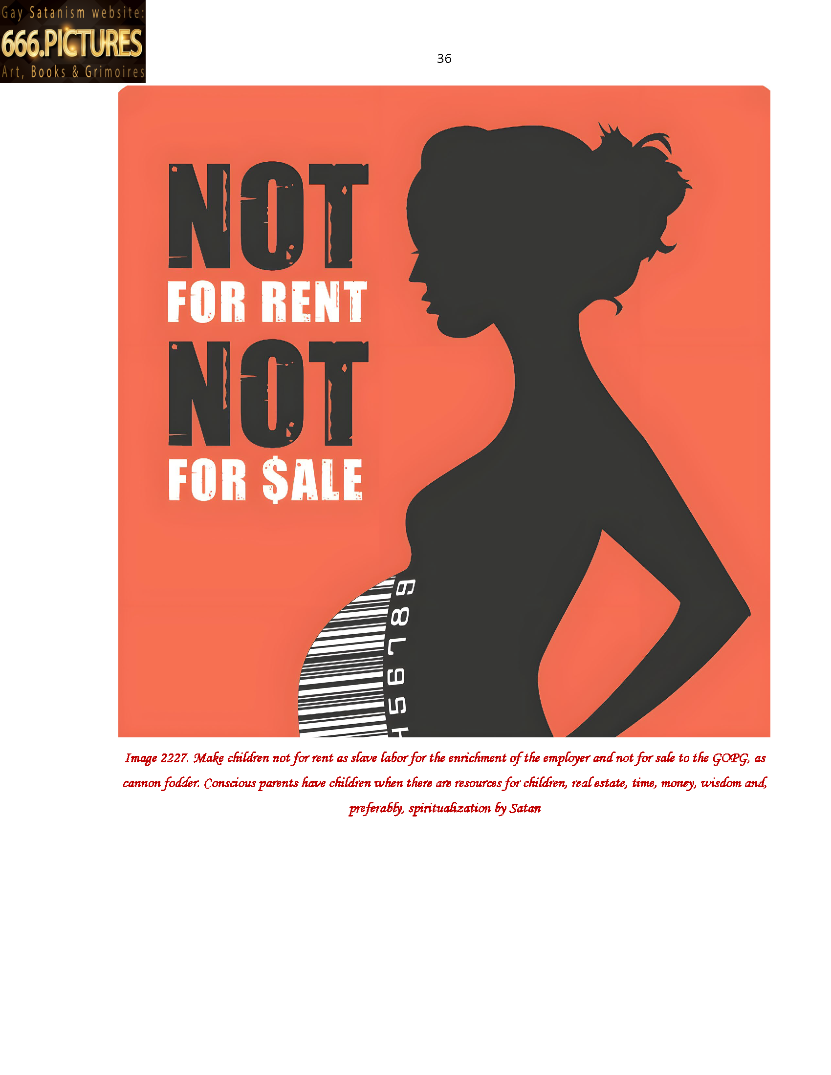 Image 2227. Make children not for rent as slave labor for the enrichment of the employer and not for sale to the GOPG, as cannon fodder. Conscious parents have children when there are resources for children, real estate, time, money, wisdom and, preferably, spiritualization by Satan 36
