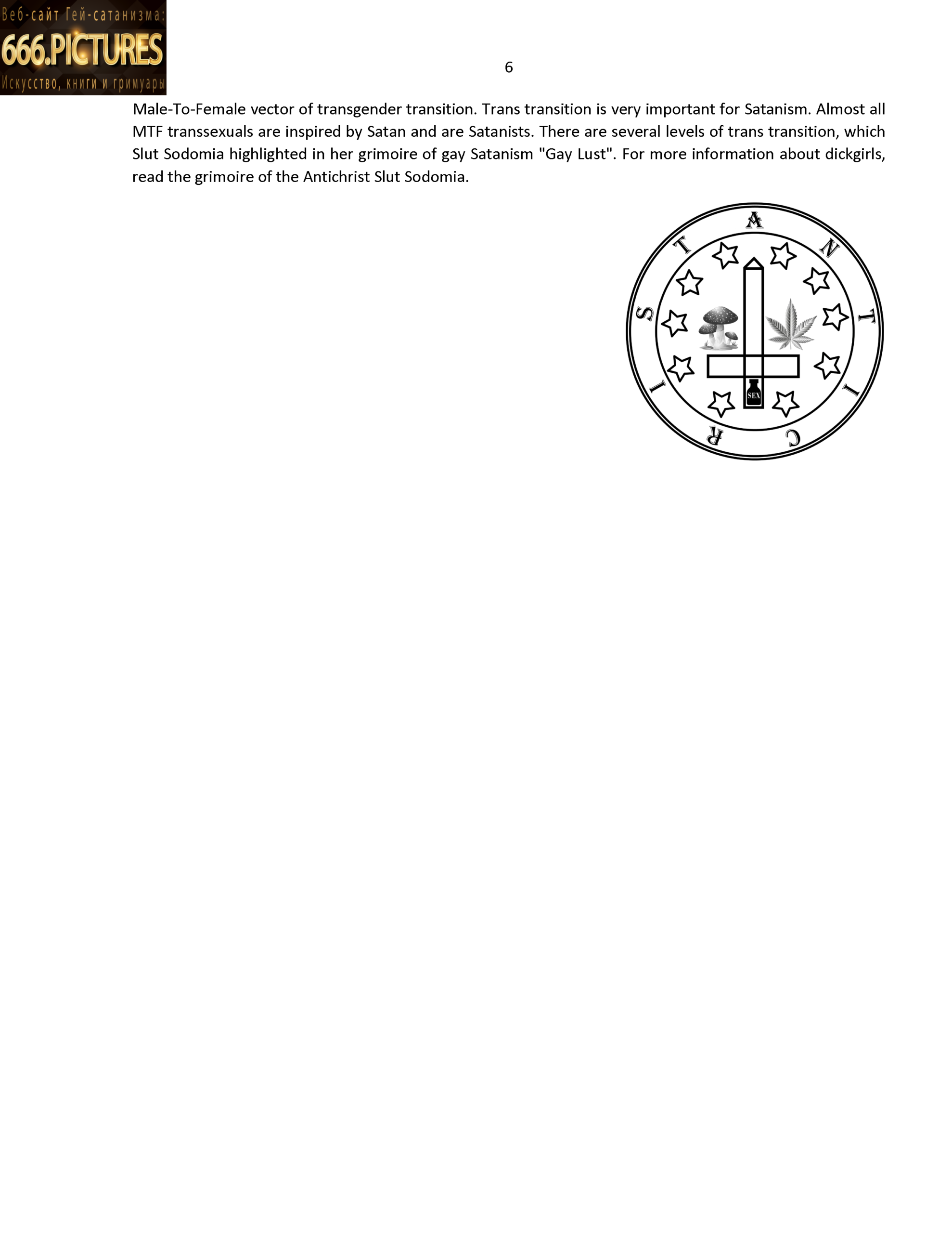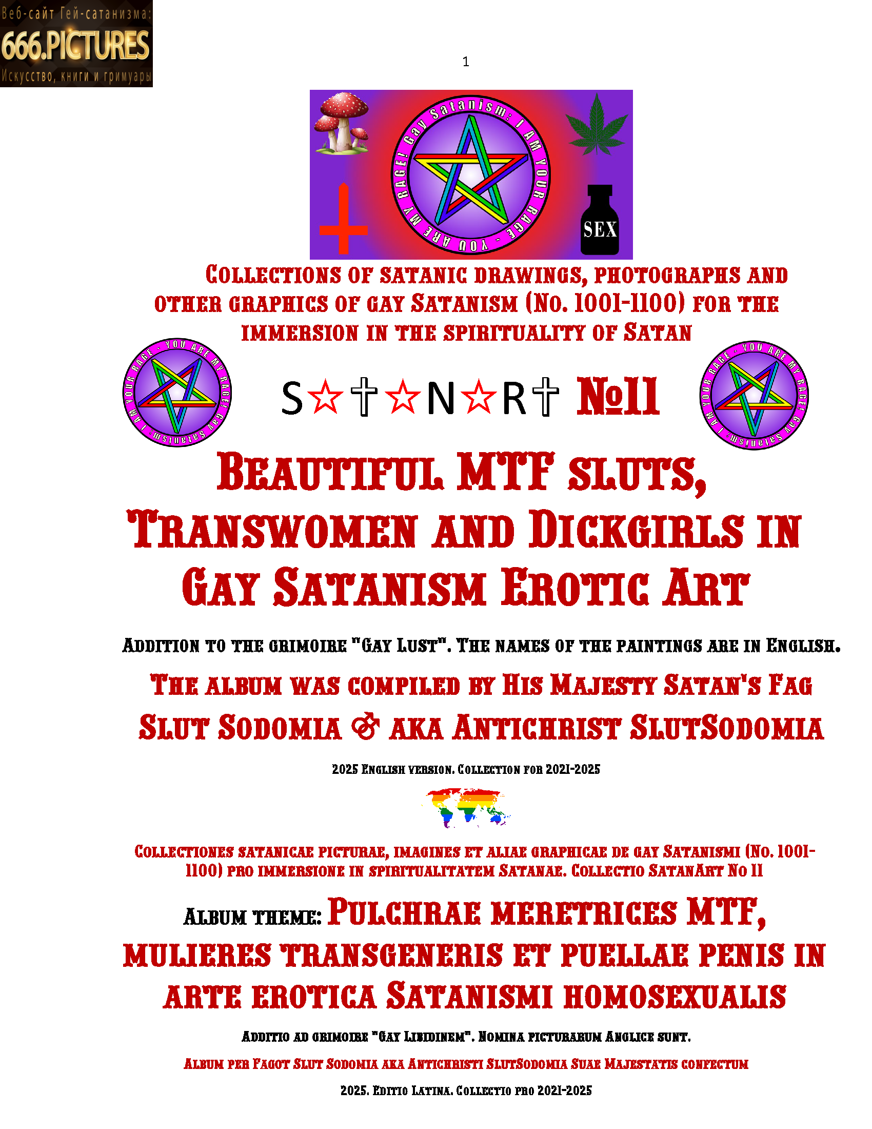 I hope that my album, dedicated to the theme of MTF trans, will also contribute to the development of transsexual erotica and pornography all over the world. The topic of trans lust is most fully disclosed in the grimoire of the Antichrist Slut Sodomia “Gay Lust”, but many interesting and sexual pictures were not included in this grimoire. In the collection SatanArt №11 I posted 100 images of MTF transsexuality, not included in the grimoire “Gay Lust” and several pictures from the grimoire, but with improved graphic resolution of the drawings.