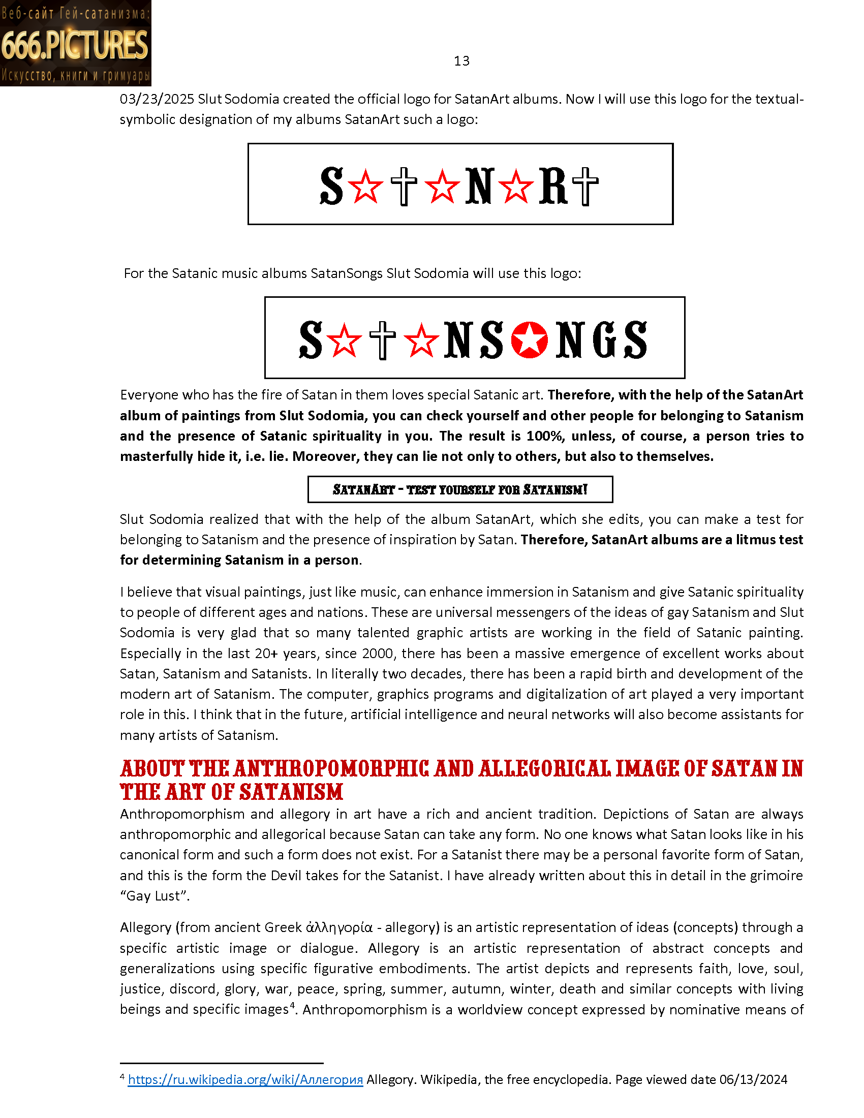 ABOUT THE ANTHROPOMORPHIC AND ALLEGORICAL IMAGE OF SATAN IN THE ART OF SATANISM 13