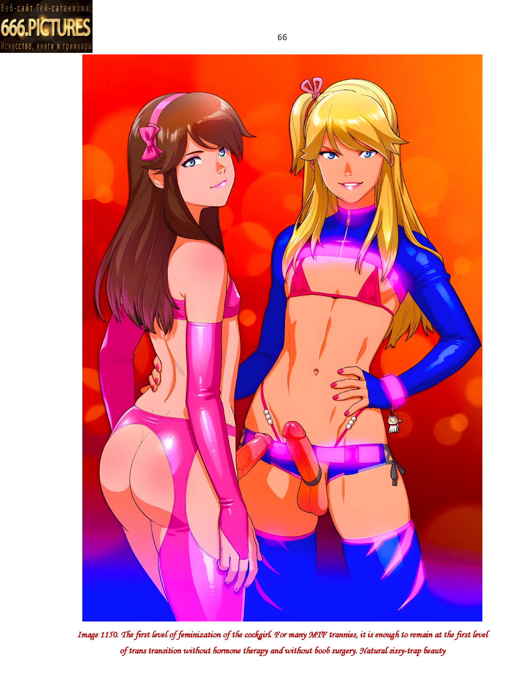 Рисунок 1104. Two MTF trans sluts fuck a She-Devil with a female pussy. A small part of cockgirls like to have sex with female Satanists. The majority of MTF cockgirls 90+% prefer homosexual partners with dicks 24