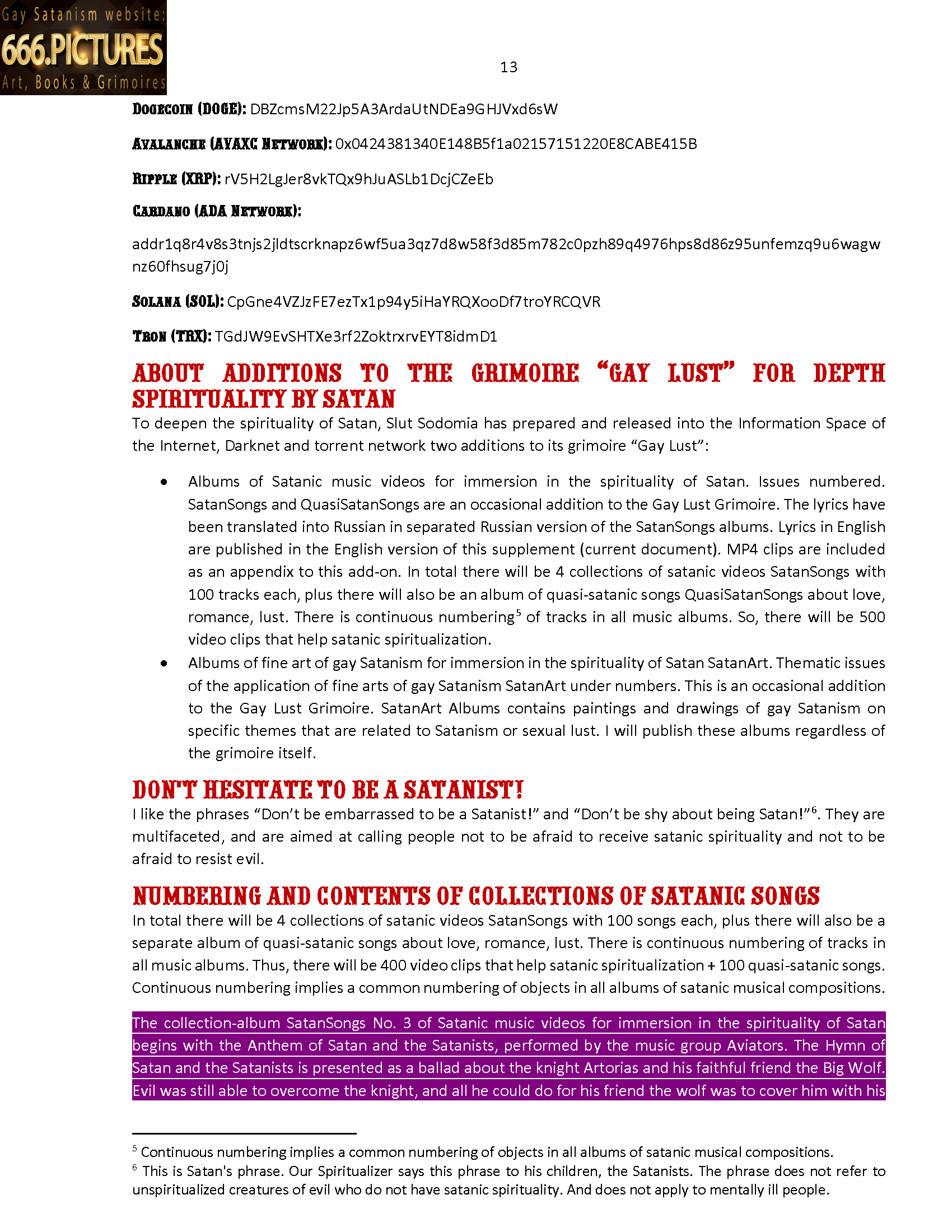 ABOUT ADDITIONS TO THE GRIMOIRE “GAY LUST” FOR DEPTH SPIRITUALITY BY SATAN 13