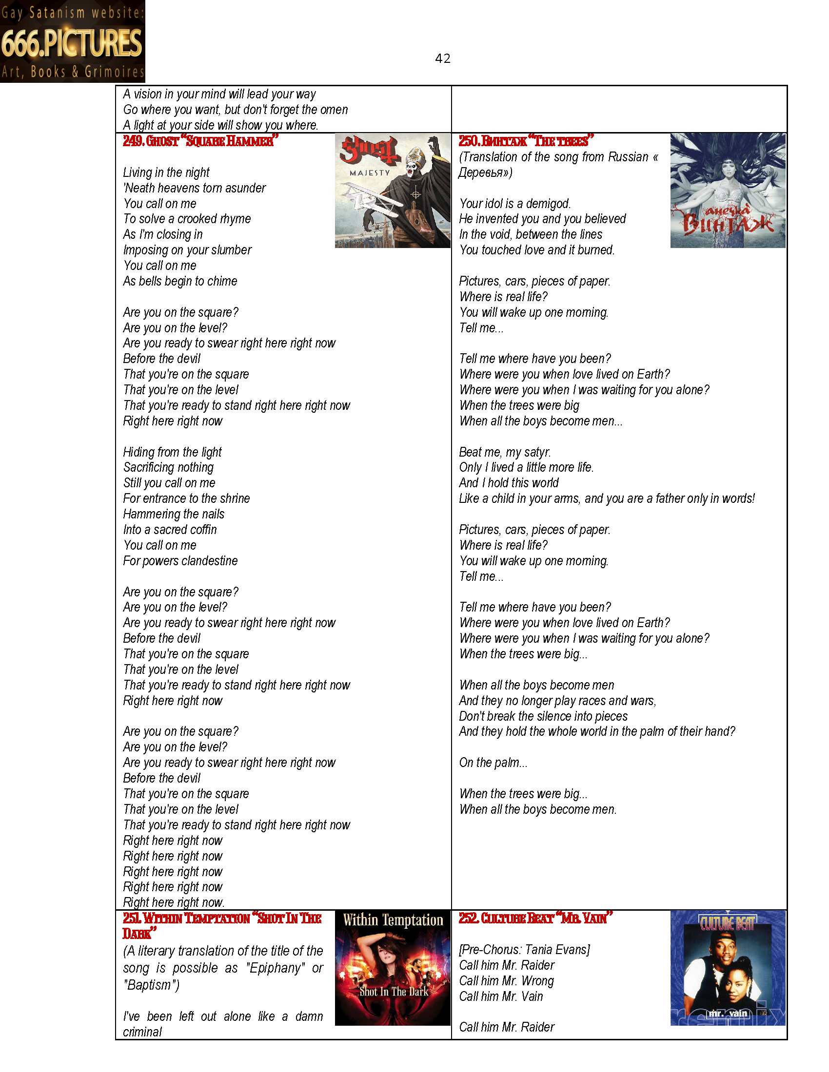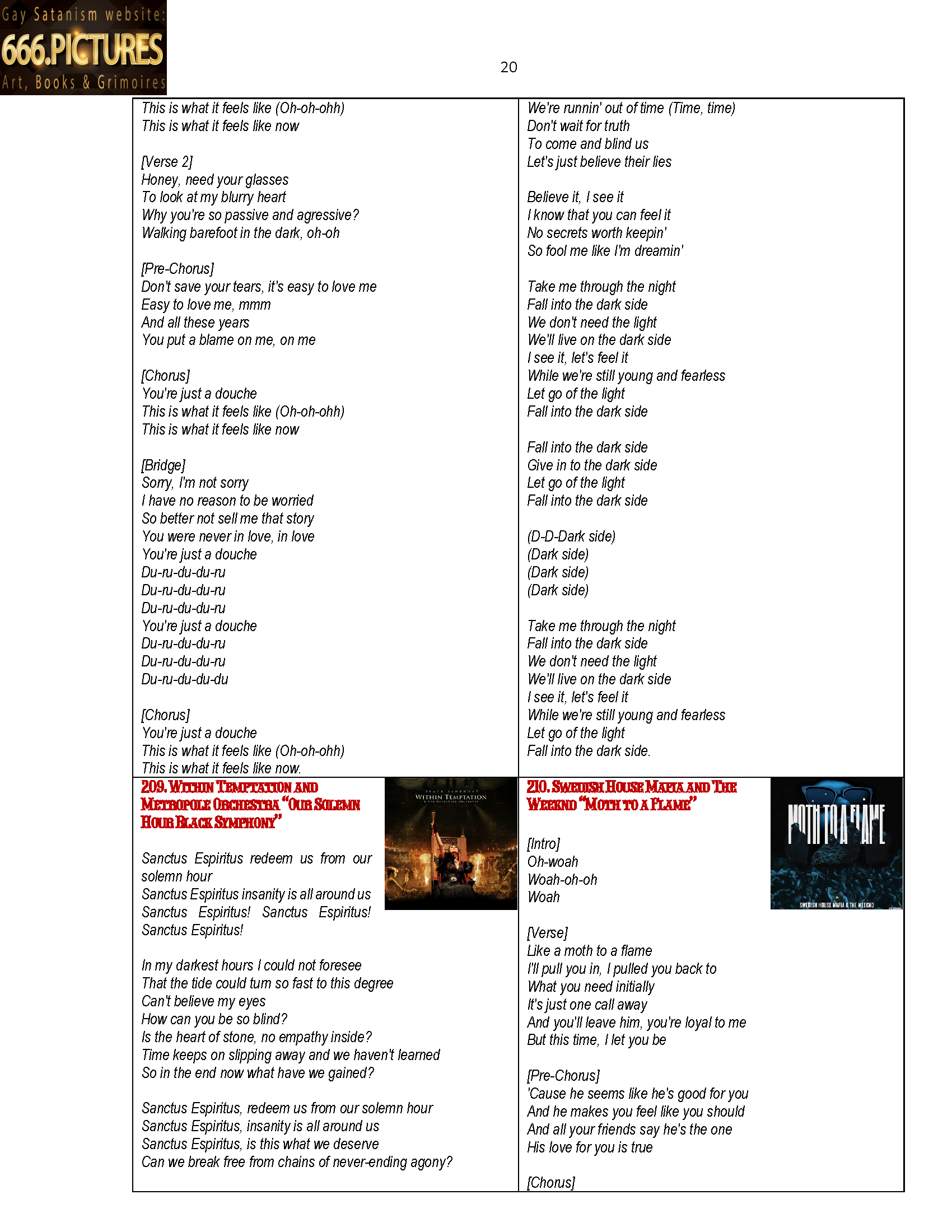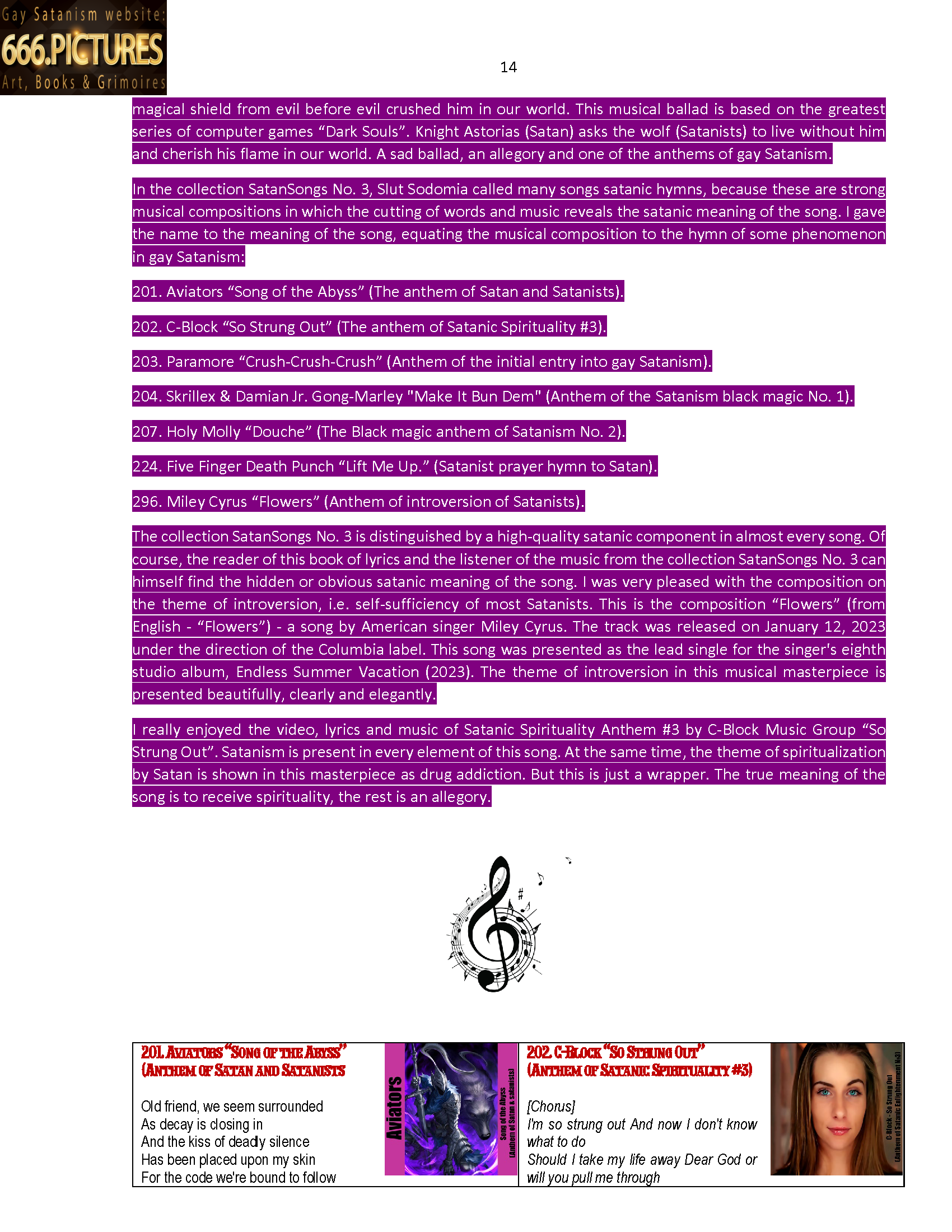 Musical Almanac of Gay Satanism SatanSongs No. 3: Lyrics + posters. An album of Satanic music videos (№201-300) for the immersion in the spirituality of Satan. High quality PDF E-book