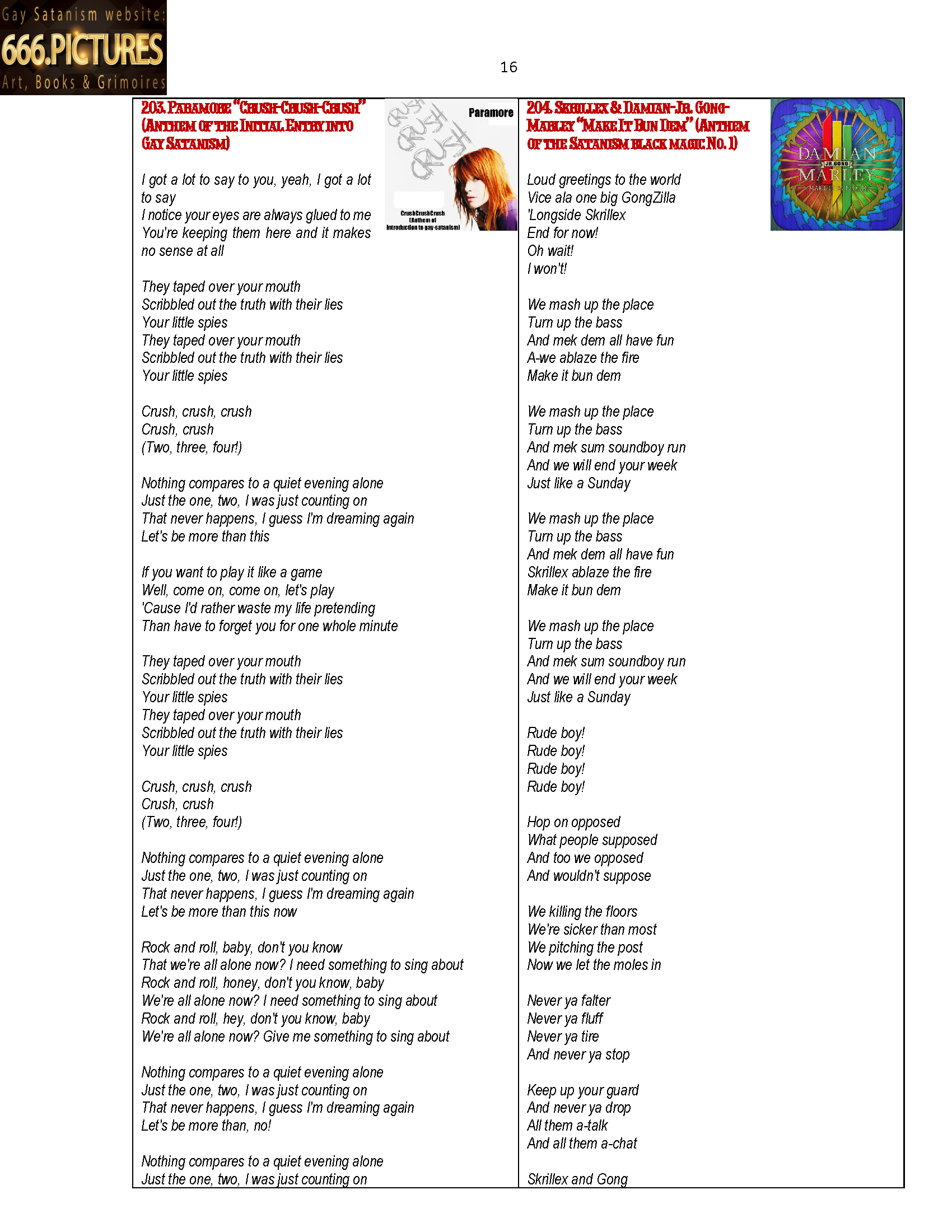 203. Paramore “Crush-Crush-Crush” (Anthem of the initial entry into gay Satanism).