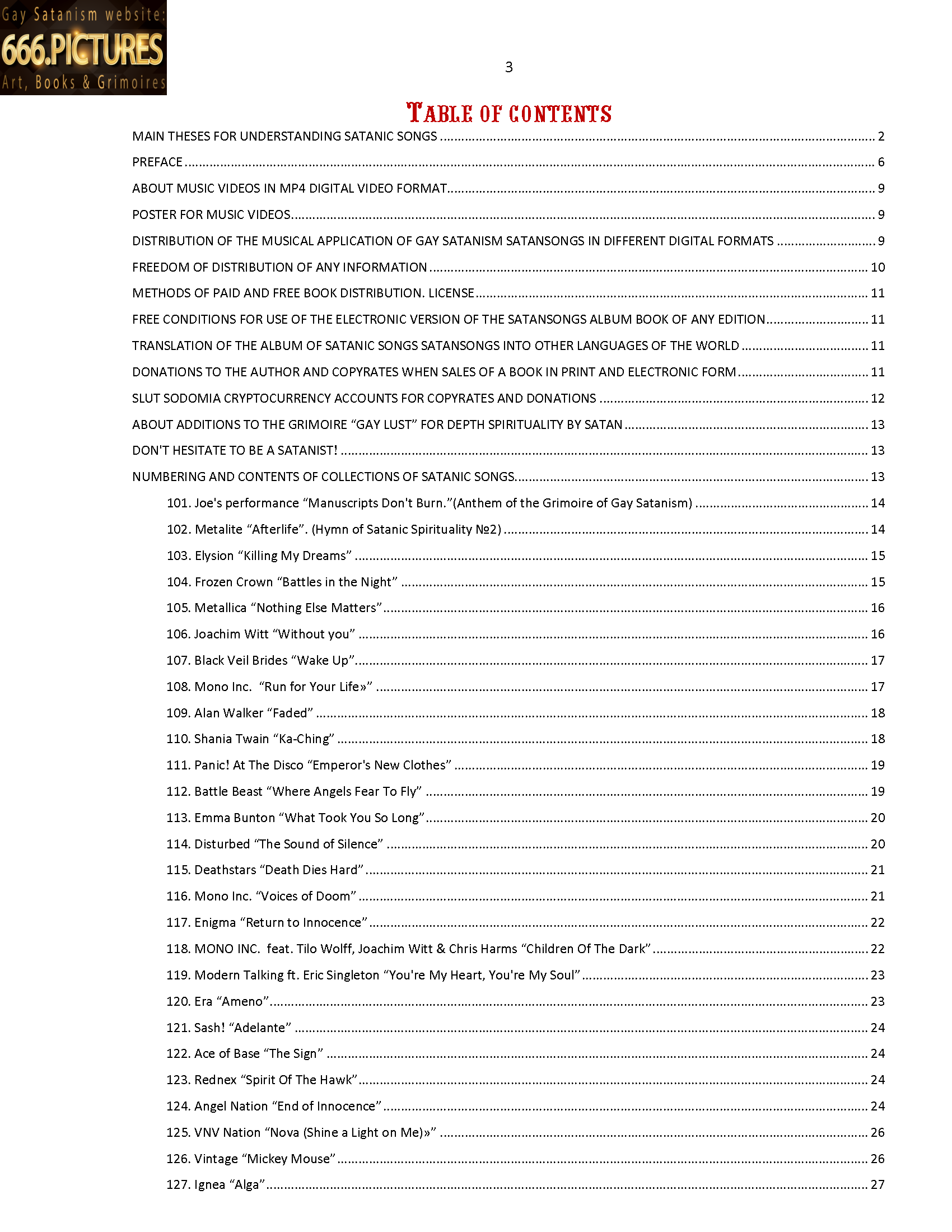 Musical Almanac of Gay Satanism SatanArt No. 2: TABLE OF CONTENTS