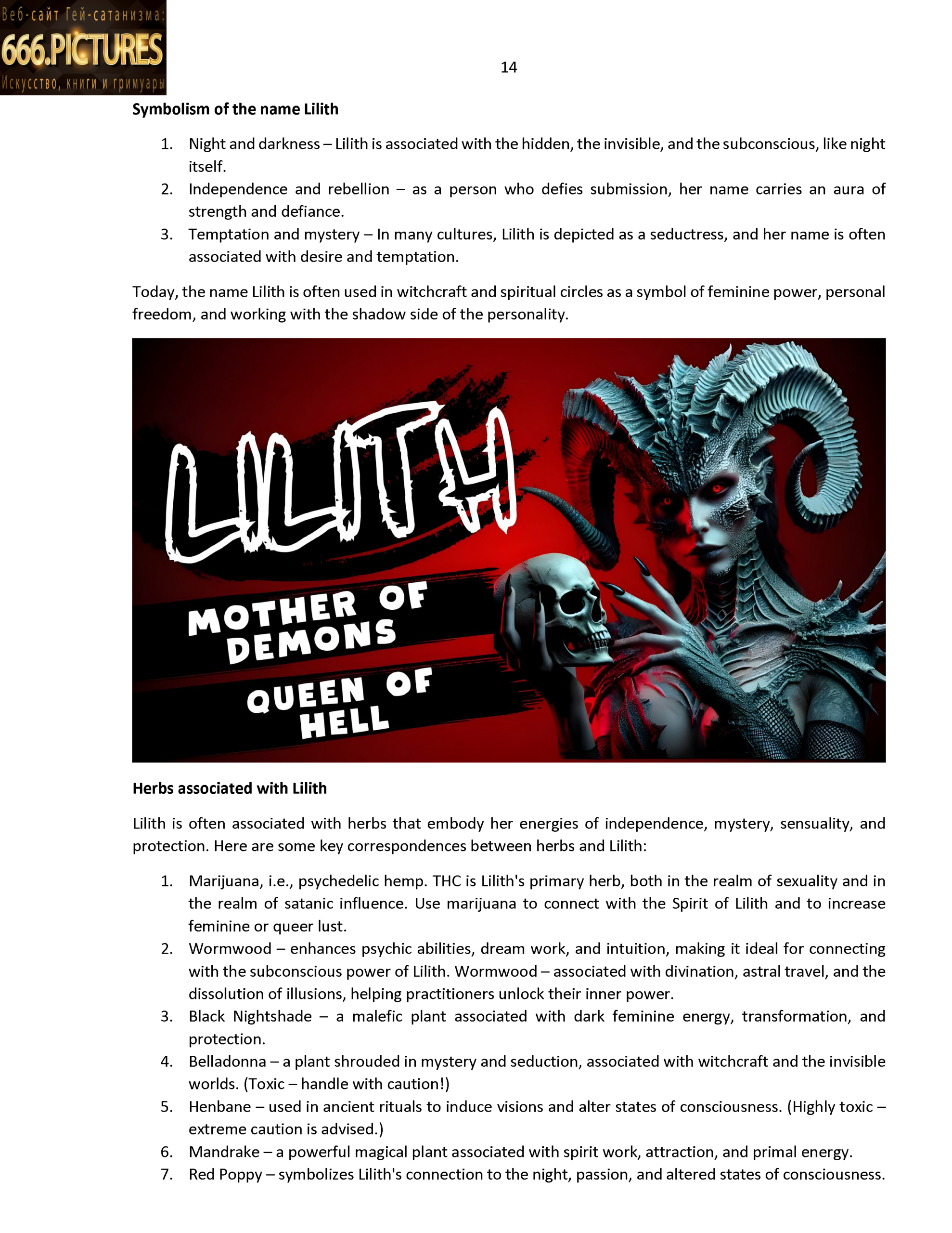 SatanArt. Nr. 43: Mother of Hell’s Demons Lilith. Queen of the Succubi, incarnate. Volume 2. Puritan edition. High quality satanic Antichrist’s fine art almanac PDF e-Book