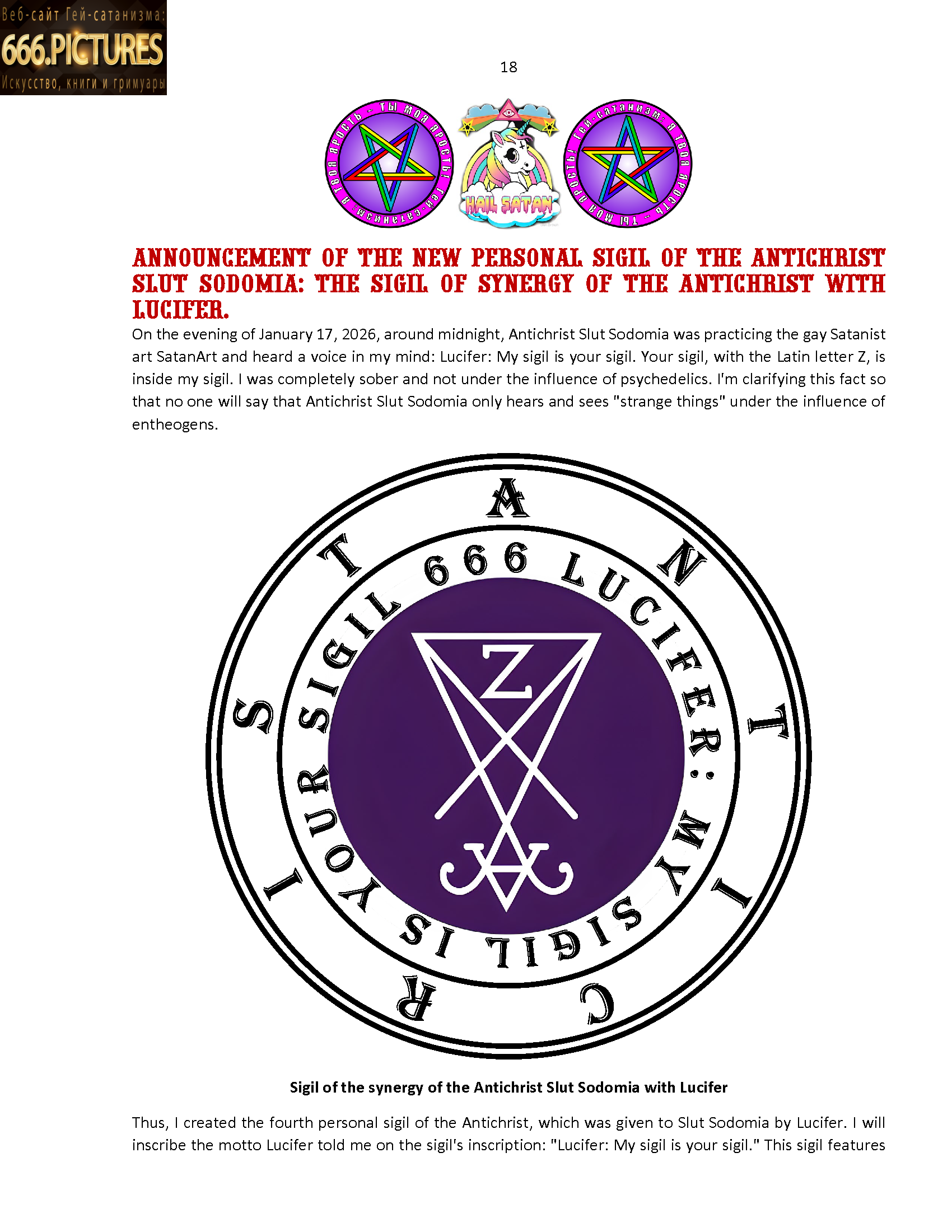 ANNOUNCEMENT OF THE NEW PERSONAL SIGIL OF THE ANTICHRIST SLUT SODOMIA: THE SIGIL OF SYNERGY OF THE ANTICHRIST WITH LUCIFER. 18