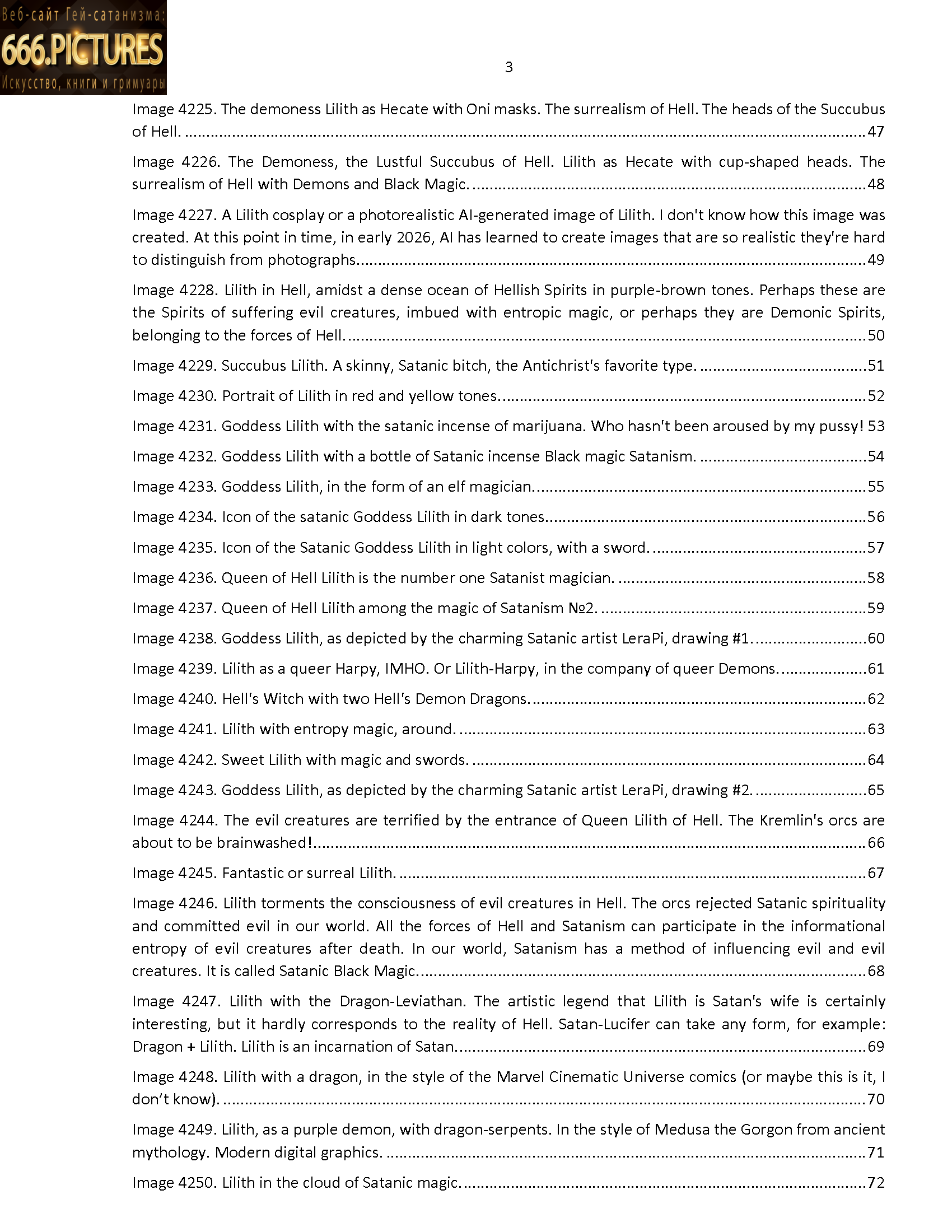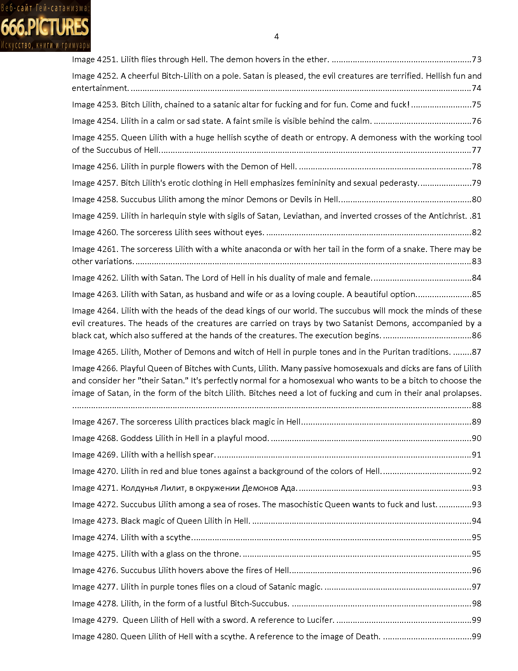 SatanArt. Nr. 38: Mother of Hell’s Demons Lilith. Queen of the Succubi, incarnate. Volume 2. Puritan edition.  TABLE OF CONTENTS