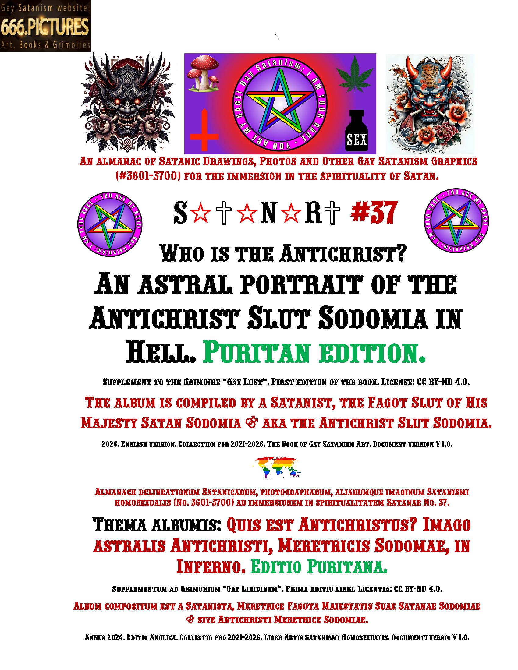 An almanac of Satanic Drawings, Photos and Other Gay Satanism Graphics (#3601-3700) for the immersion in the spirituality of Satan. The album is compiled by a Satanist, the Fagot Slut of His Majesty Satan Sodomia ⚣ aka the Antichrist Slut Sodomia. 2026. English version. Collection for 2021-2026. The Book of Gay Satanism Art.