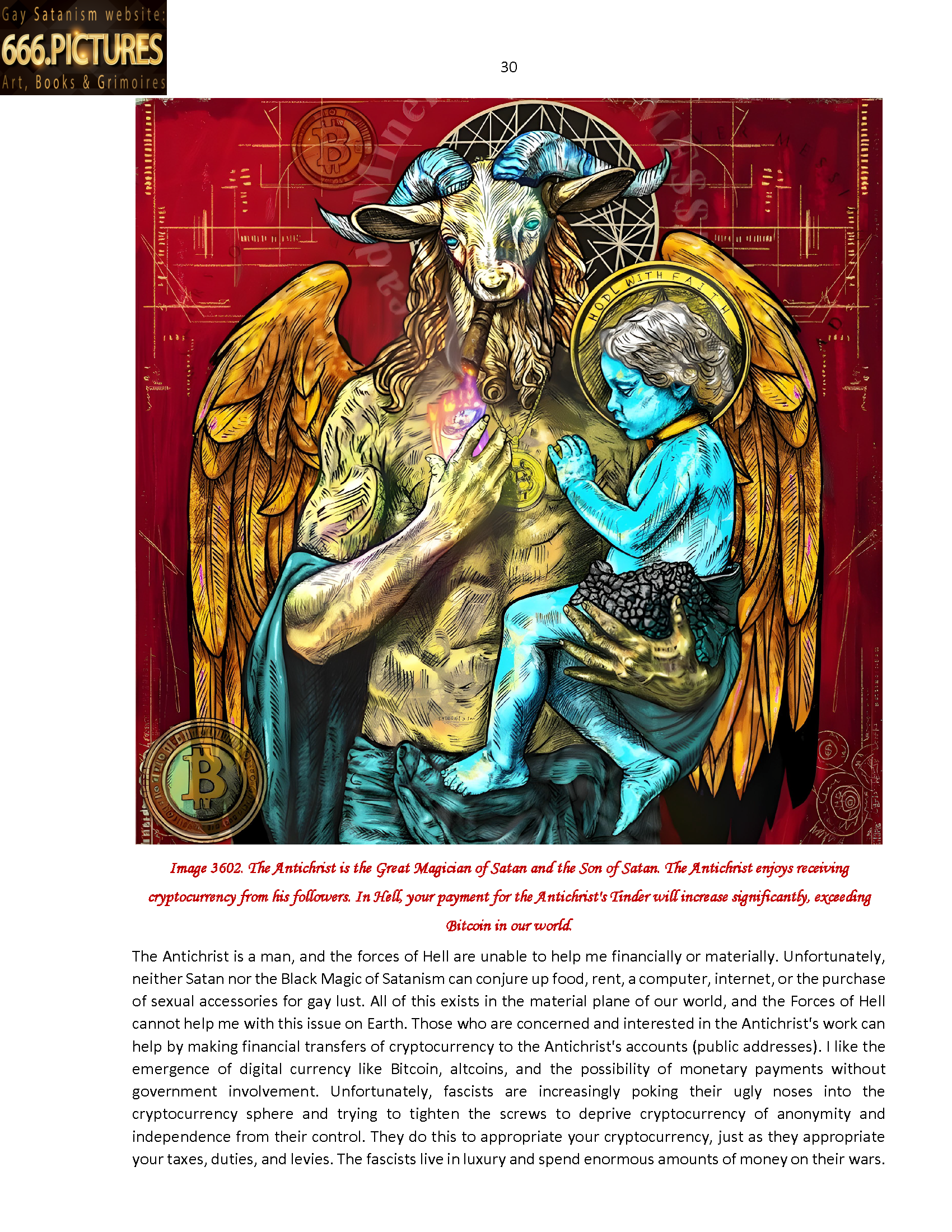 Image 3602. The Antichrist is the Great Magician of Satan and the Son of Satan. The Antichrist enjoys receiving cryptocurrency from his followers. In Hell, your payment for the Antichrist’s Tinder will increase significantly, exceeding Bitcoin in our world. 30