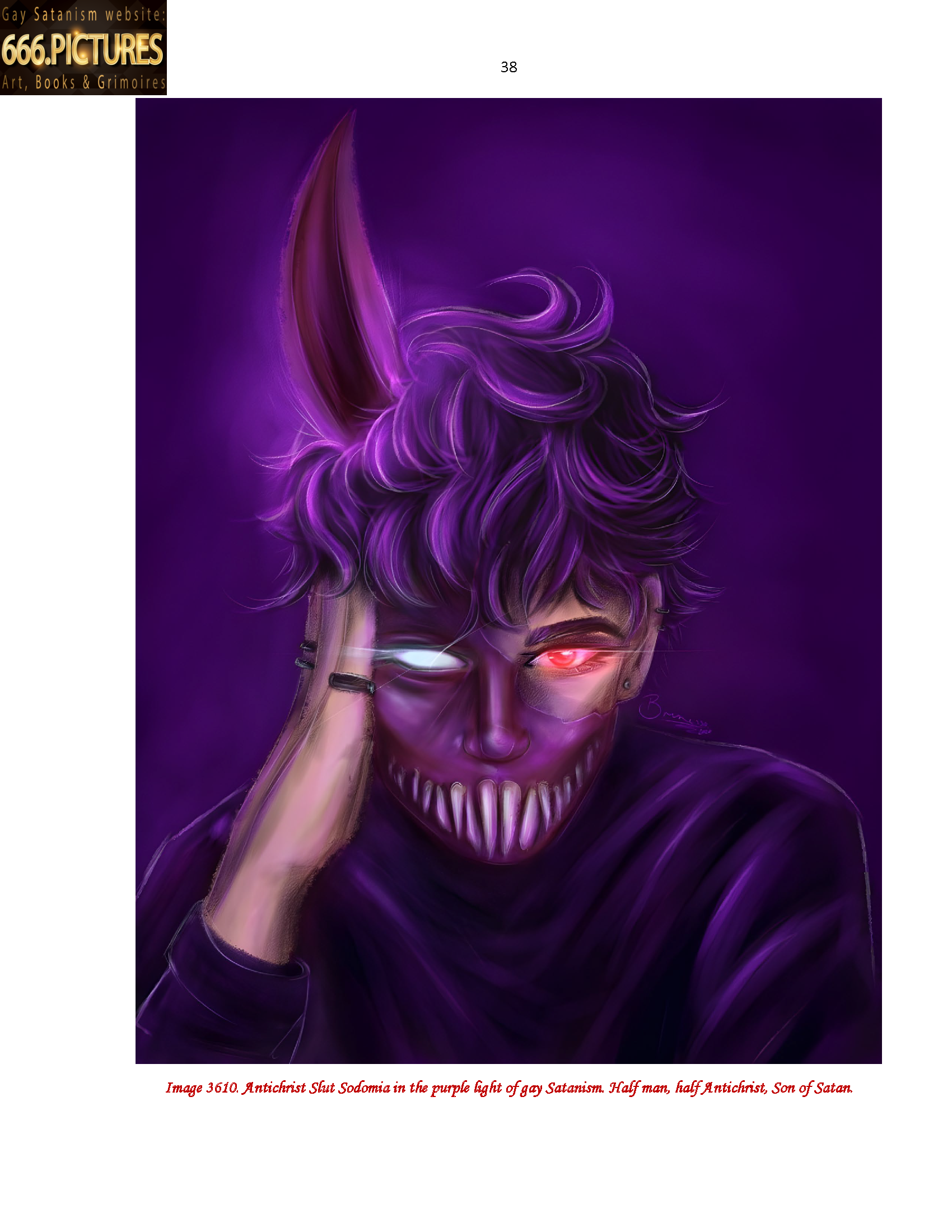 Image 3610. Antichrist Slut Sodomia in the purple light of gay Satanism. Half man, half Antichrist, Son of Satan. 38