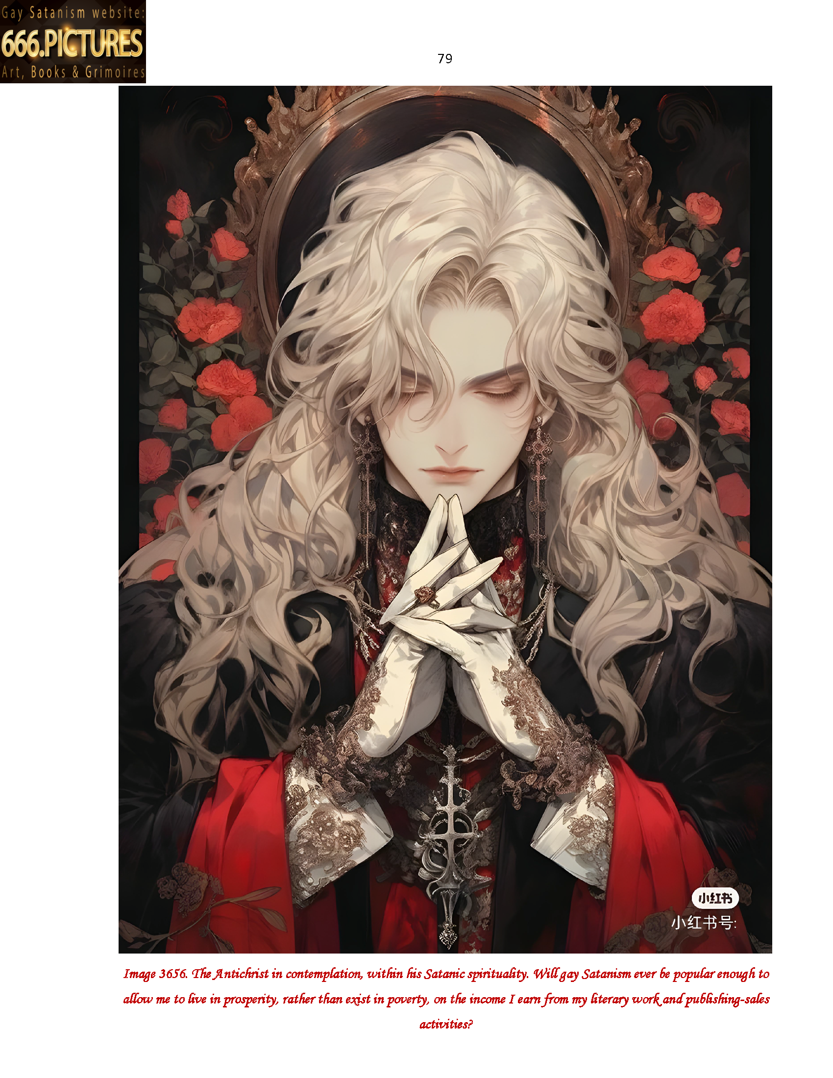 Image 3656. The Antichrist in contemplation, within his Satanic spirituality. Will gay Satanism ever be popular enough to allow me to live in prosperity, rather than exist in poverty, on the income I earn from my literary work and publishing-sales activities? 79